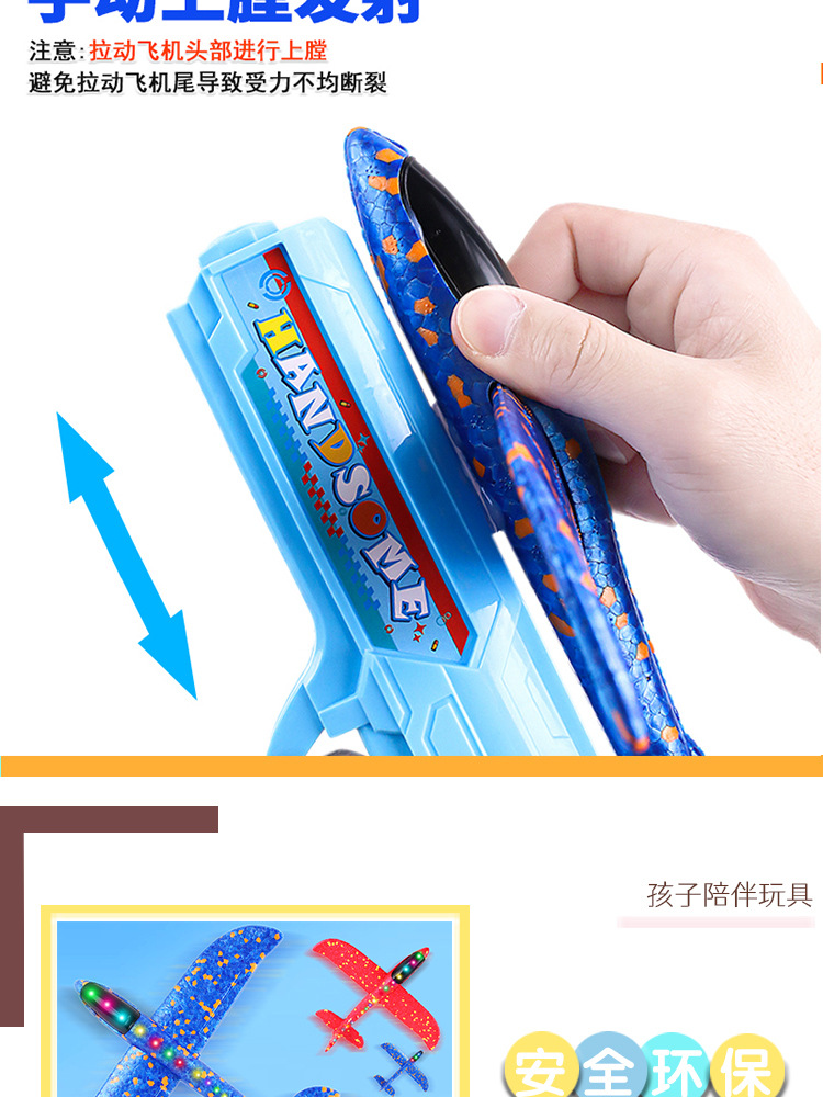 캐터필러 폼 비행기 휴대용 발사 총 야외 스포츠 소년 손으로 던지는 비행 글라이더 어린이 장난감