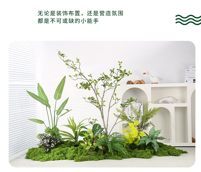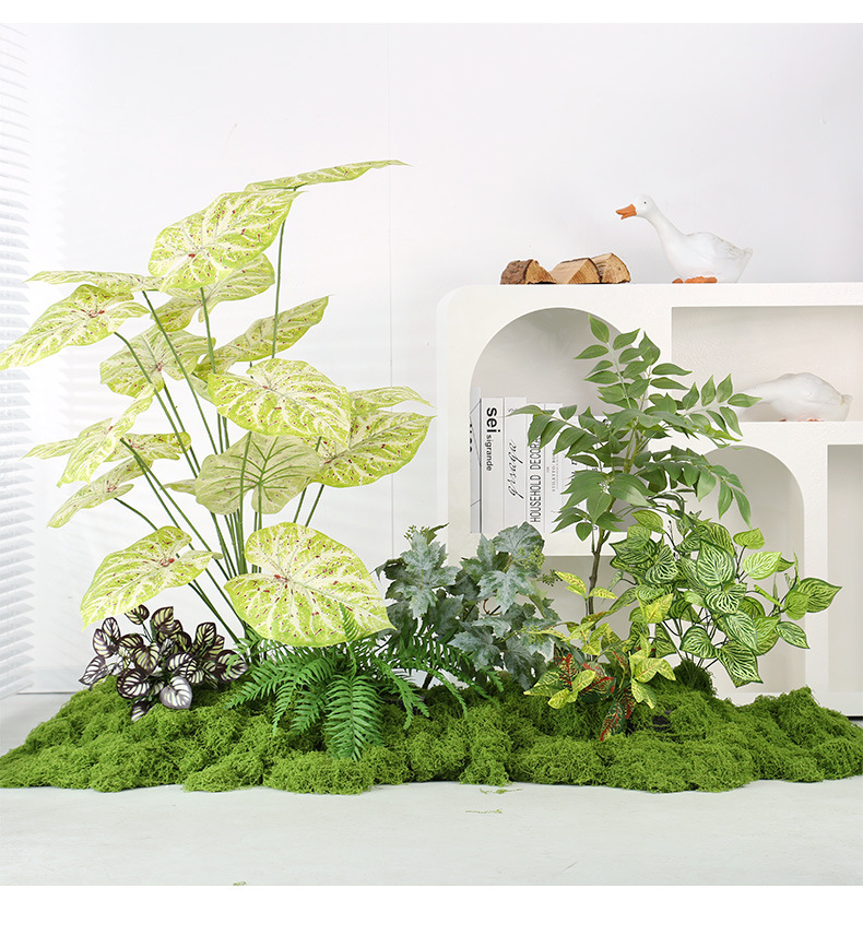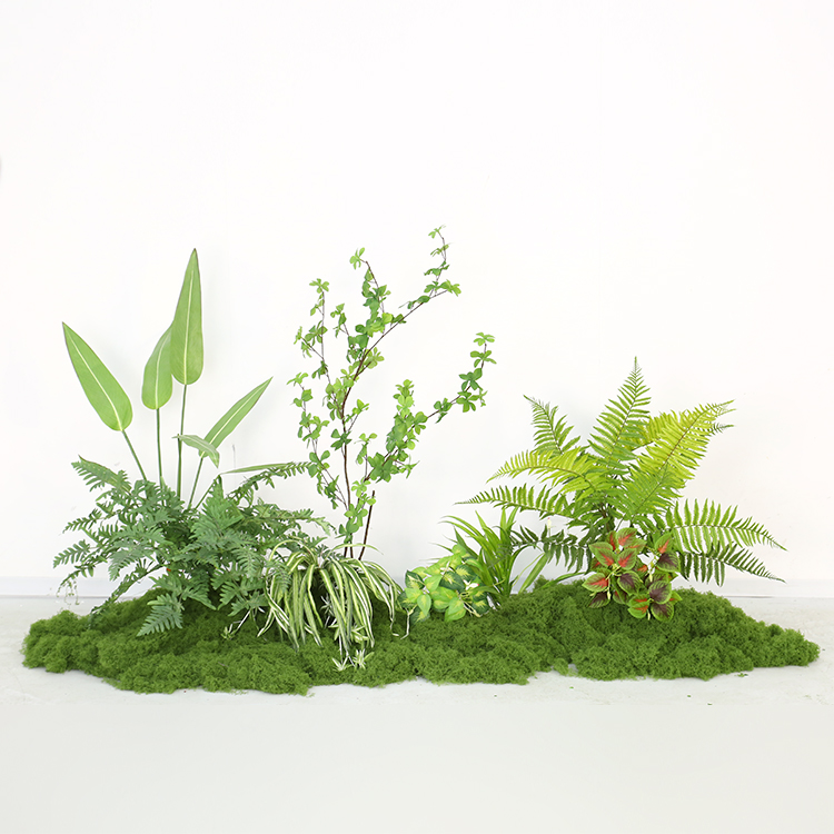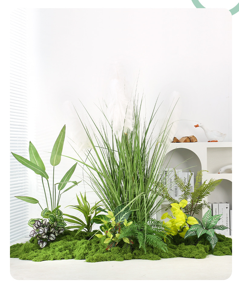 시뮬레이션된 녹색 식물 조경, 계단 아래 작은 조경, 복도 코너, 창문 칸막이, 바닥부터 천장까지의 가짜 식물 장식 배열