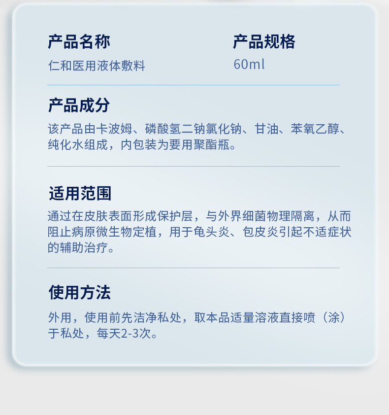 Renhe 의료용 액체 드레싱 60ml/개 Dropshipping 도매스토어 가기
