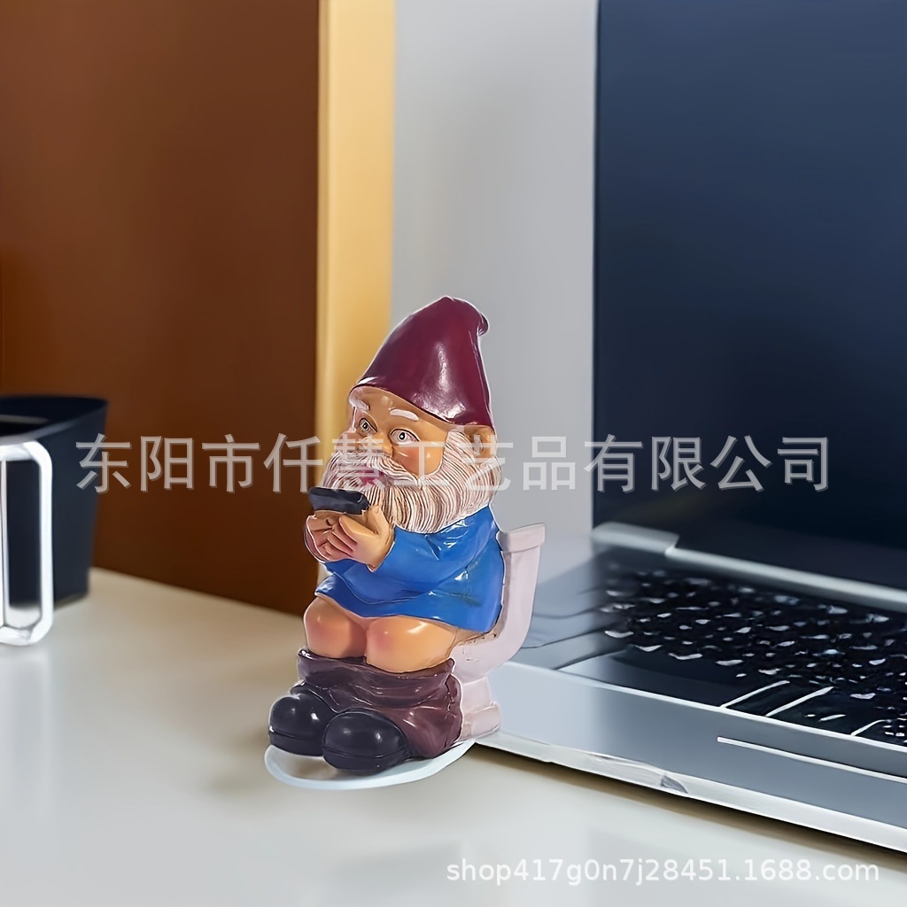 국경을 넘는 인기 크리스마스 선물 수지 공예 화장실에 앉아 있는 난쟁이 노인 안뜰 장식 장식품스토어 가기