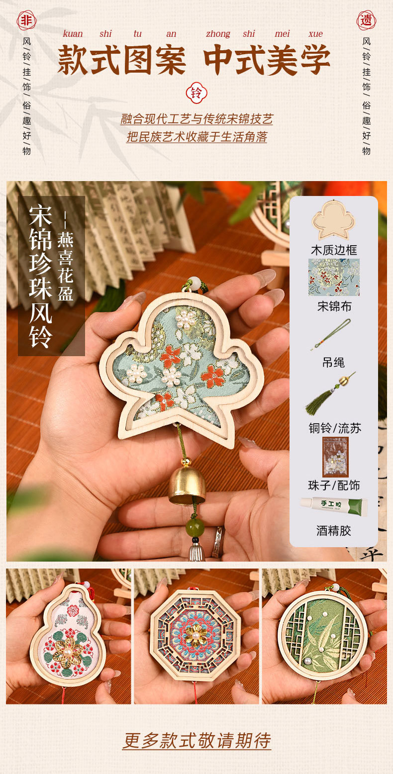 송나라풍 진주 풍경종 수제 DIY 재료 세트, 새로운 중국풍 수제 종 장식, 설날 및 봄 축제 활동용스토어 가기
