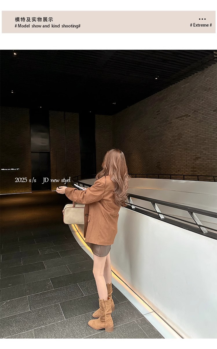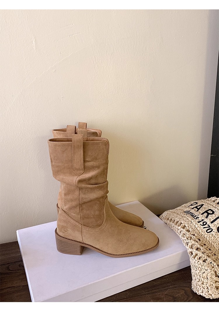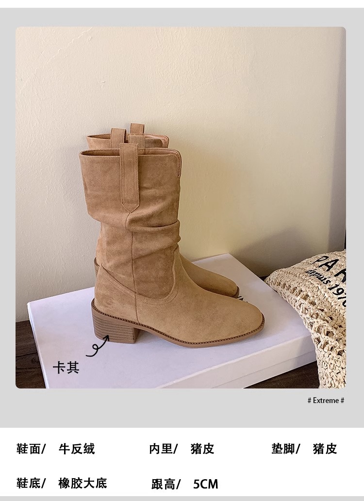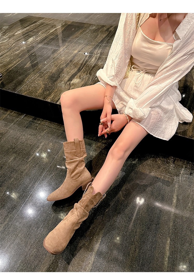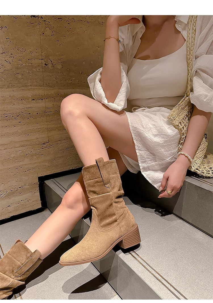 여성을위한 복고풍 다목적 카우보이 부츠 2025 봄, 가을 새로운 스타일 뾰족한 발가락 두꺼운 굽 주름 짧은 마틴 부츠 나이트 부츠스토어 가기