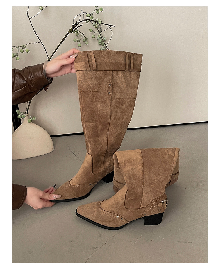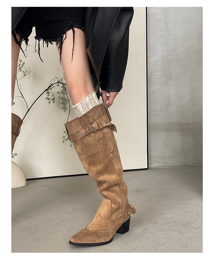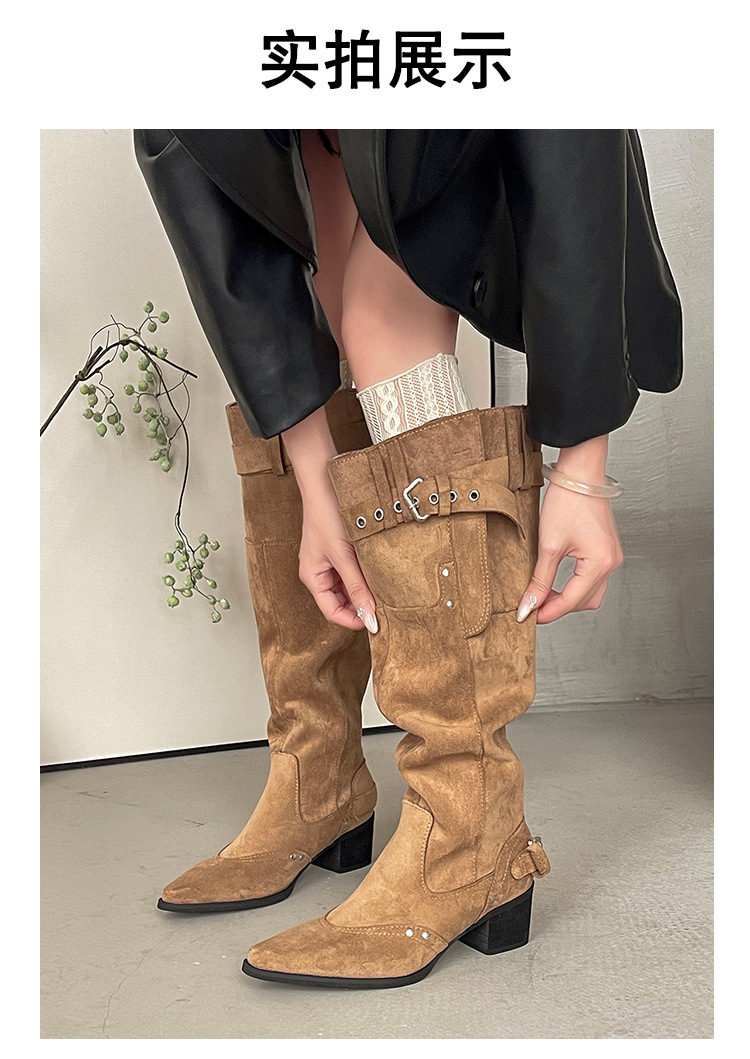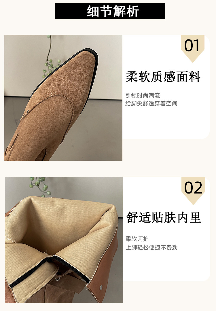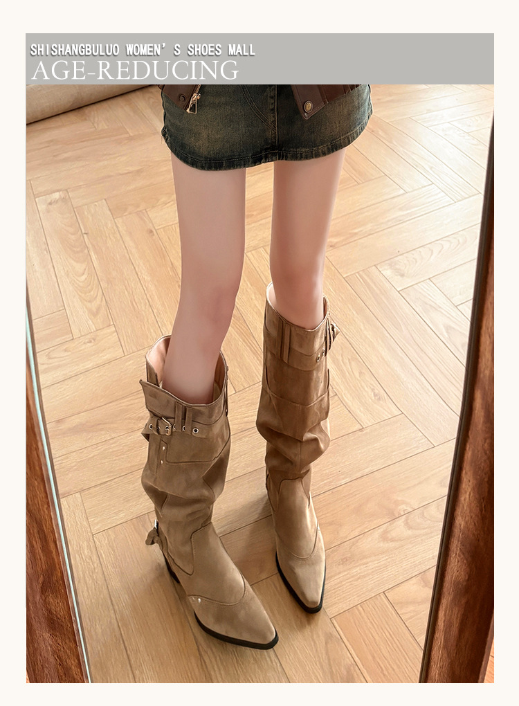 니치 디자인 백 지퍼 포인티드 토 부츠, 여성용 대형 튜브 하이힐 스택 부츠, 레트로 슬림 웨스턴 패션 부츠스토어 가기