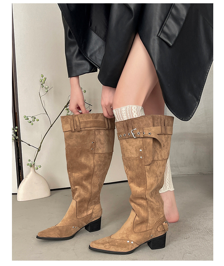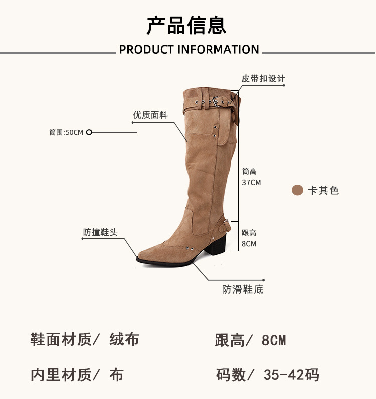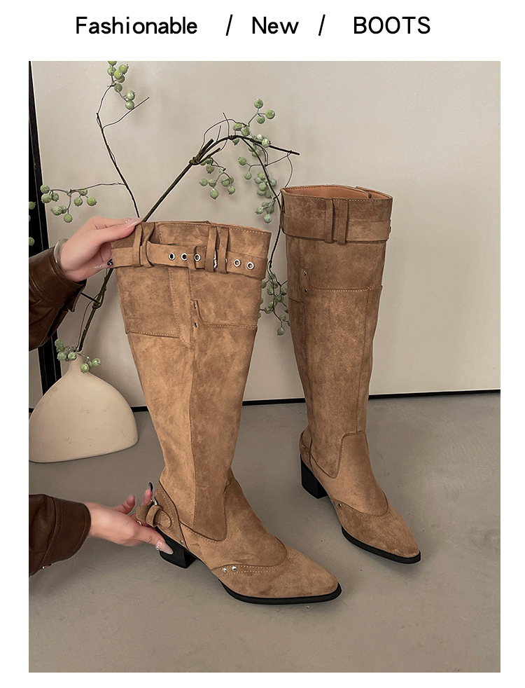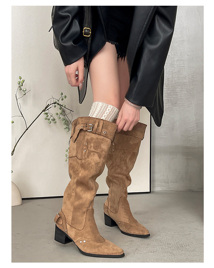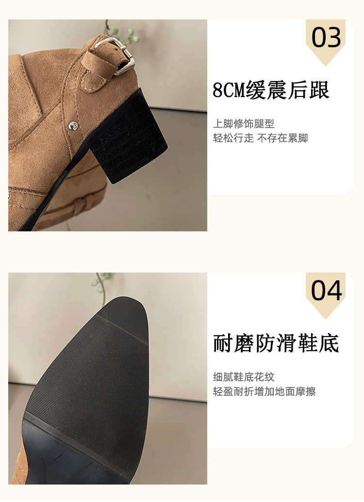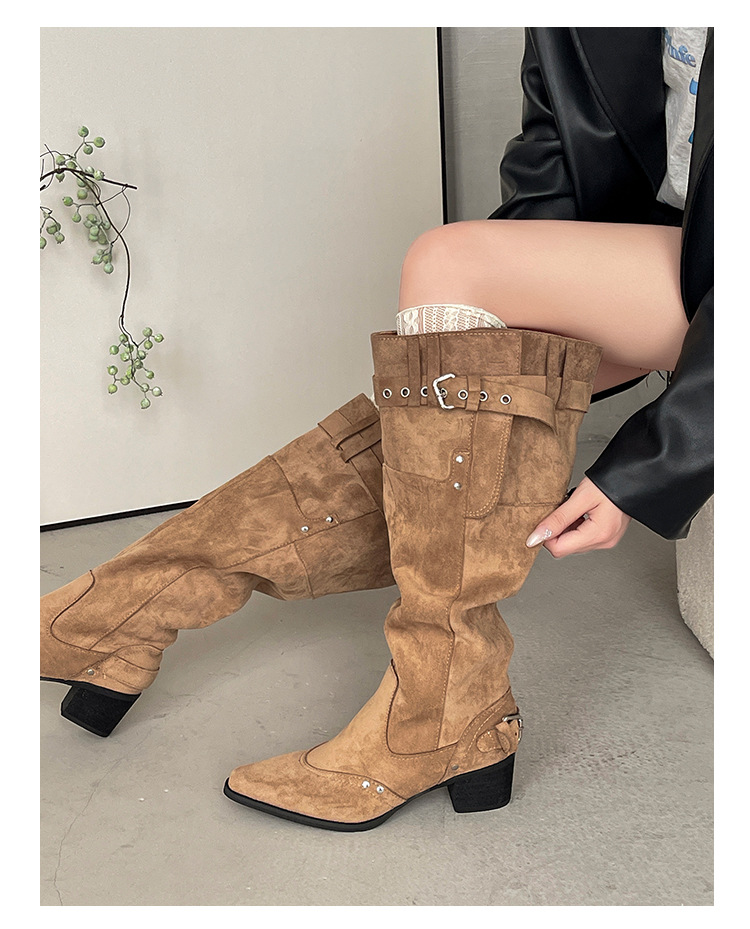 니치 디자인 백 지퍼 포인티드 토 부츠, 여성용 대형 튜브 하이힐 스택 부츠, 레트로 슬림 웨스턴 패션 부츠스토어 가기
