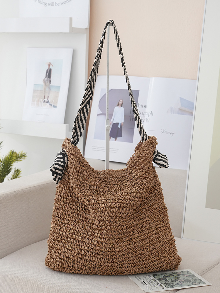 심플한 한국판 인 네이비 스타일 다용도 종이 로프 밀짚 가방 숄더백 대용량 다용도 패션 게으른