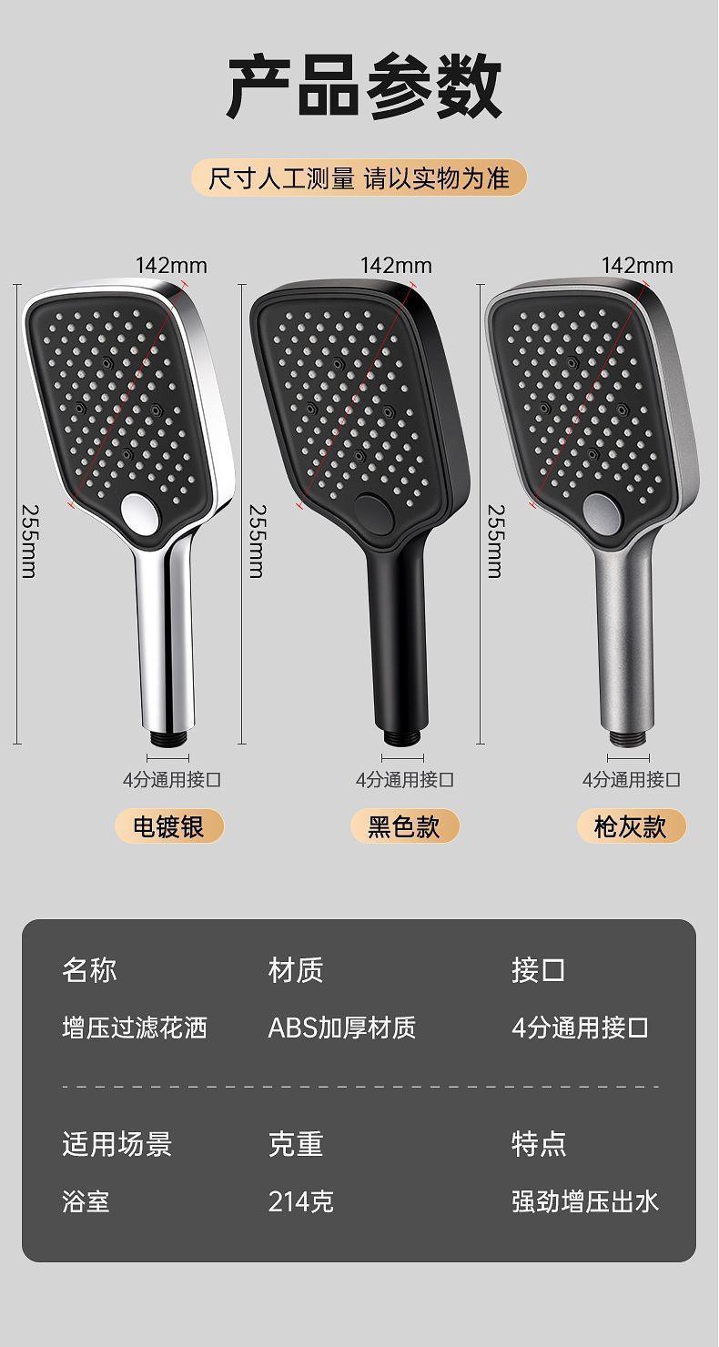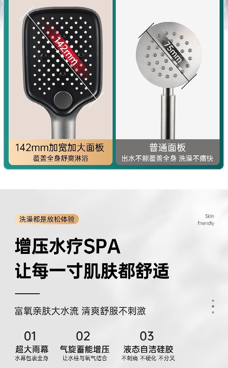 3단 가압 핸드 스프레이 샤워 헤드 가정용 욕실 샤워 목욕 가압 샤워 샤워 헤드 세트