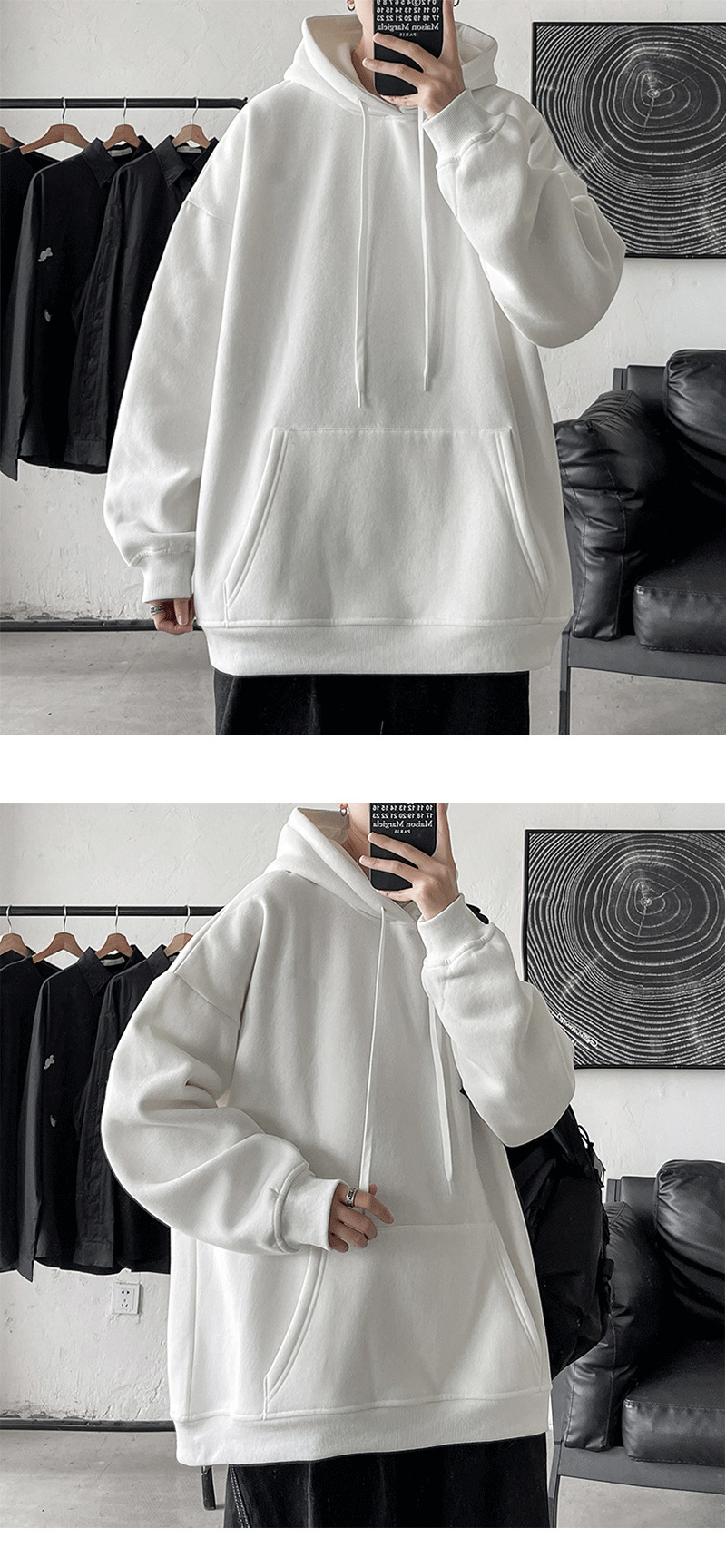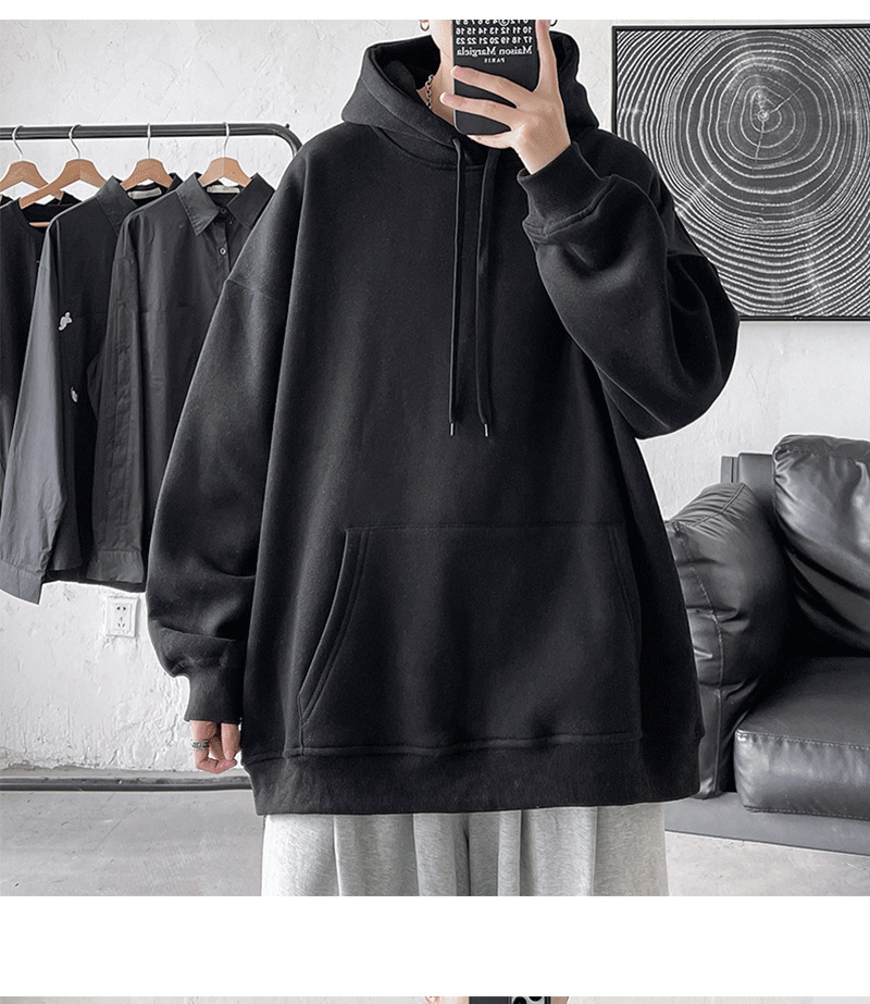 남성용 스웨트 셔츠, 가을 커플 착용, 긴팔 헤비급 남성용 재킷, 벨벳 후드 솔리드 컬러 스웨트 셔츠, 남성용 탑스토어 가기