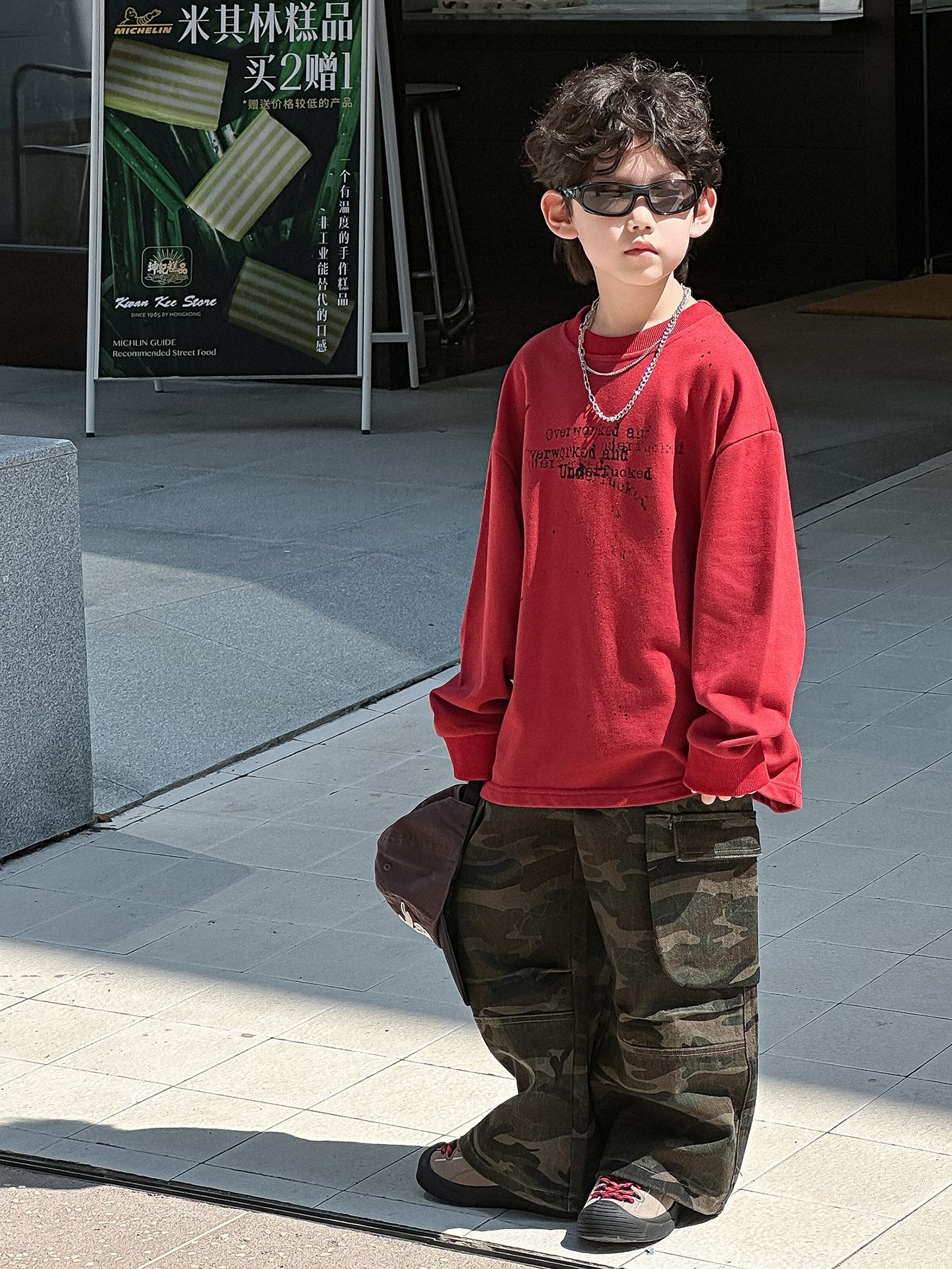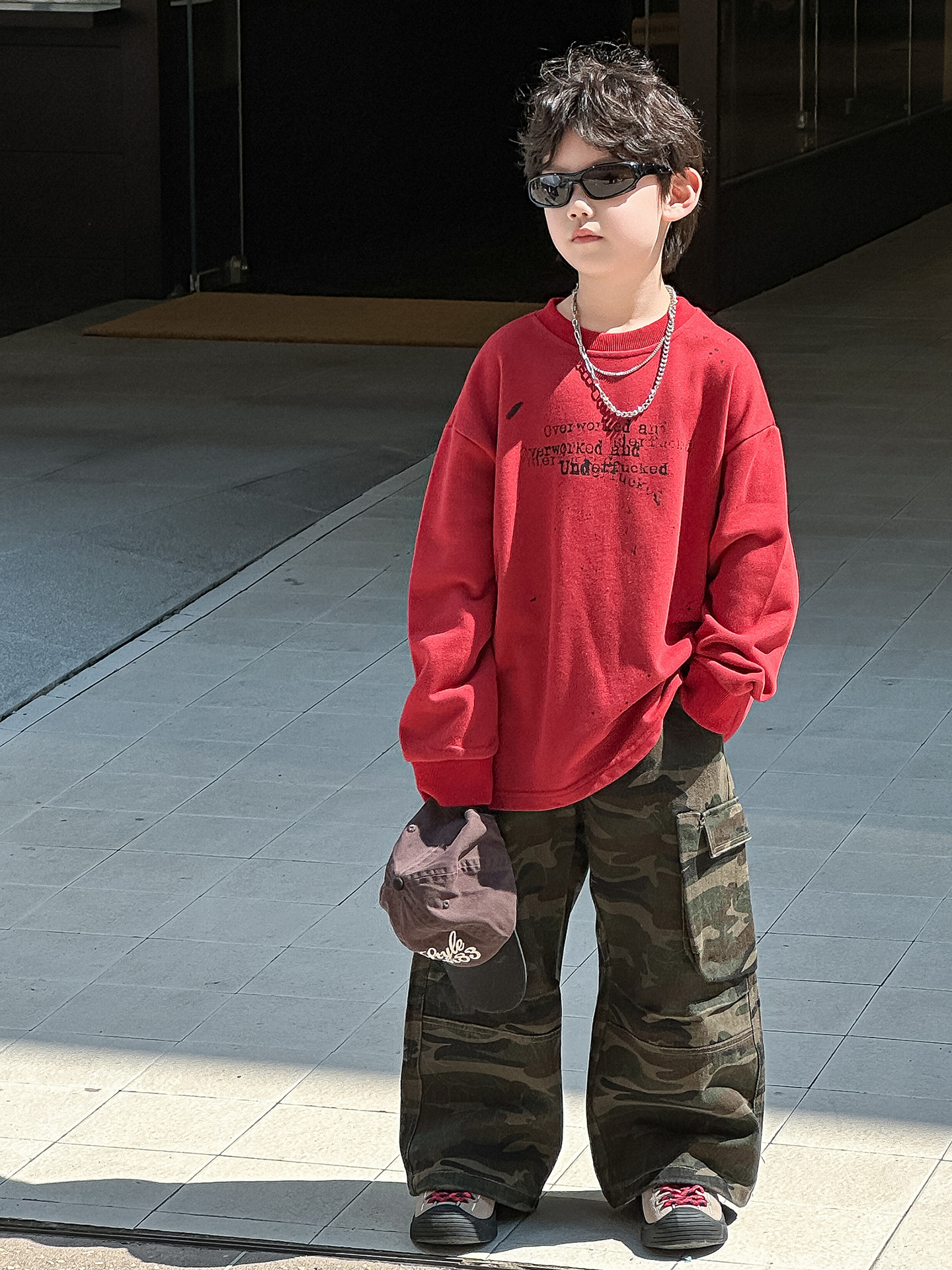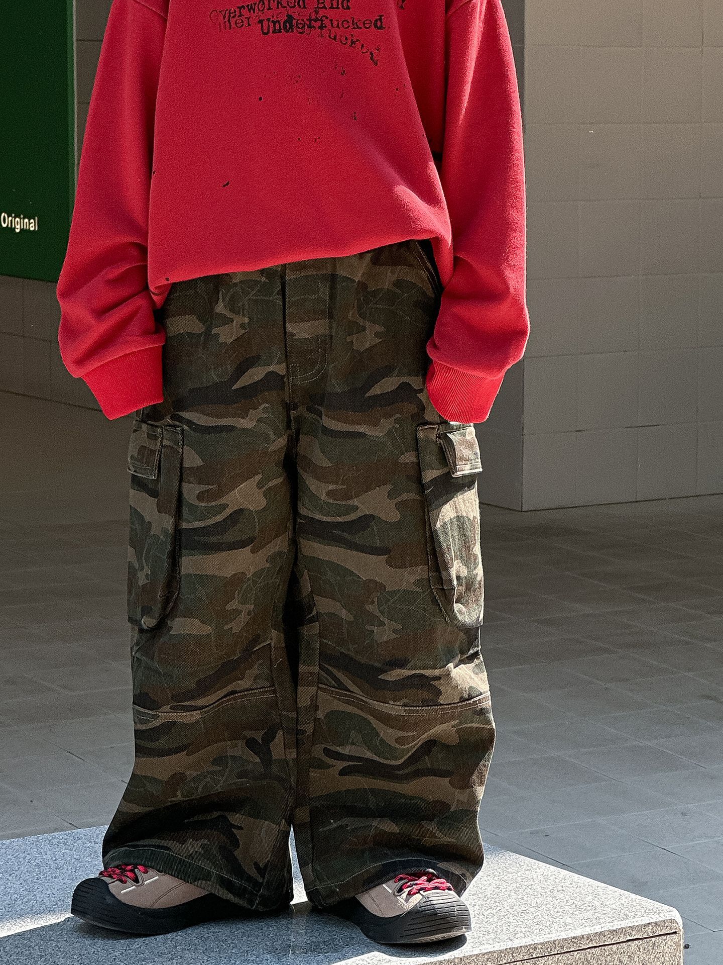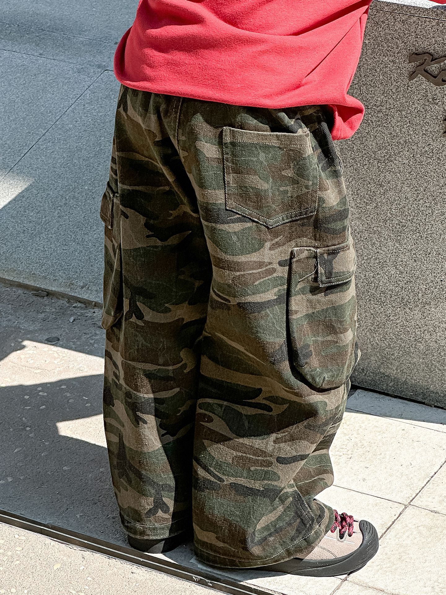 코튼샵 봄 한국판 아동복 바지 2026 신상 아동용 카모플라주 카고 팬츠 와이드 레그 멋스럽고 트렌디한 아웃도어 스타일스토어 가기