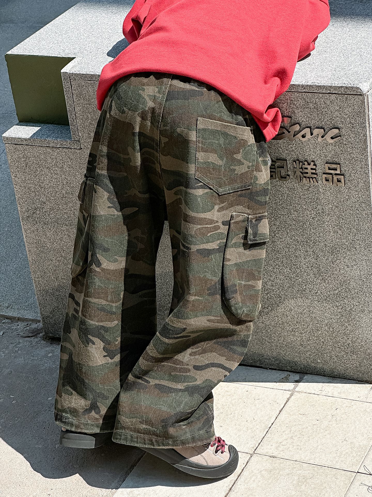 코튼샵 봄 한국판 아동복 바지 2026 신상 아동용 카모플라주 카고 팬츠 와이드 레그 멋스럽고 트렌디한 아웃도어 스타일