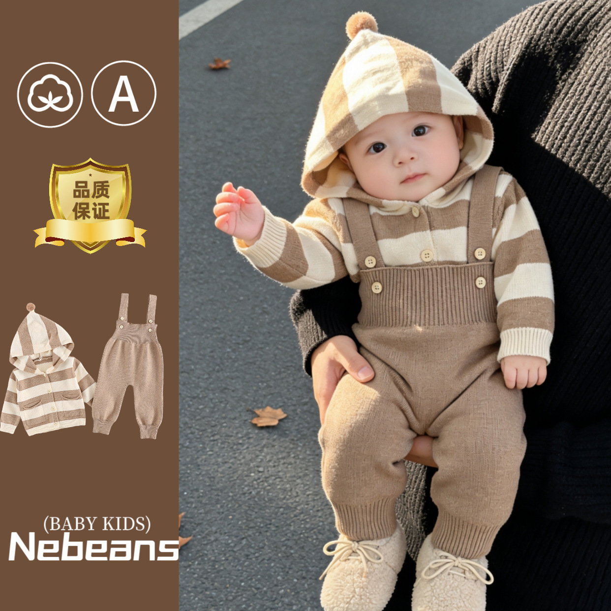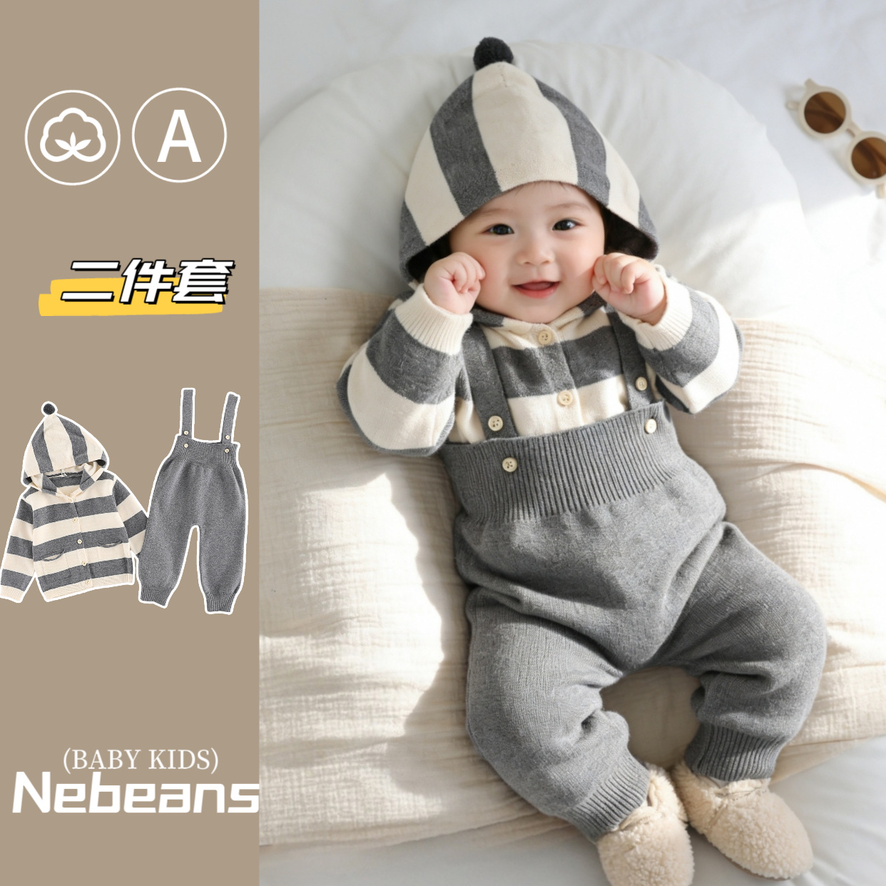 가을 신생아 옷 작업복 정장 한국식 원사 염색 줄무늬 니트 울 스웨트 셔츠 아기 옷스토어 가기