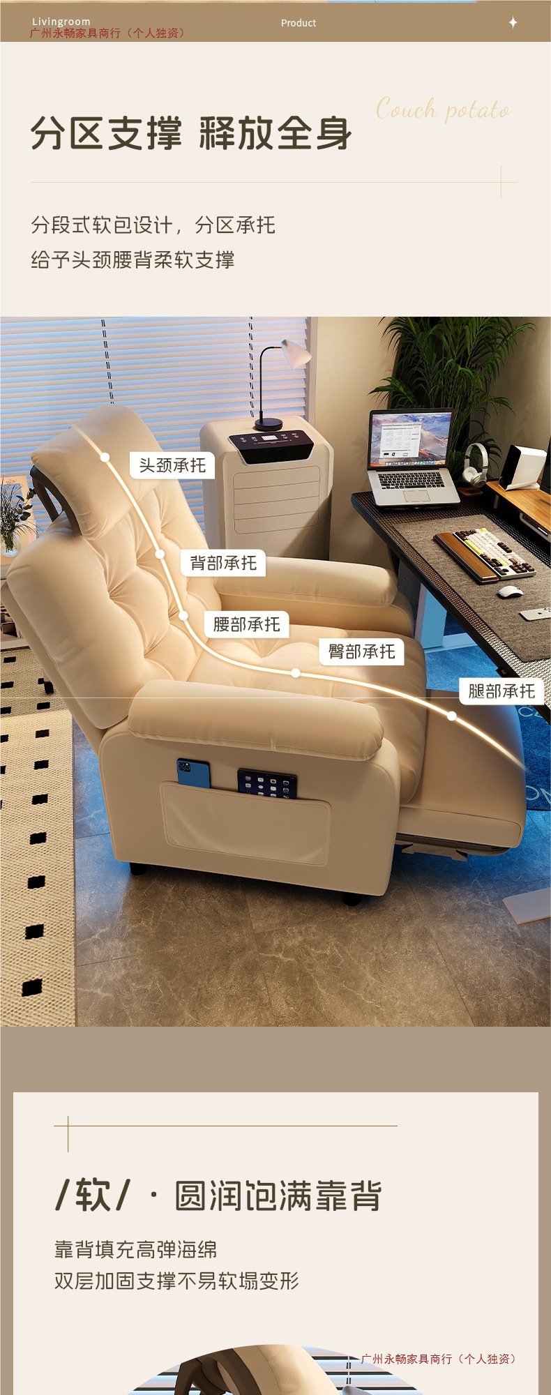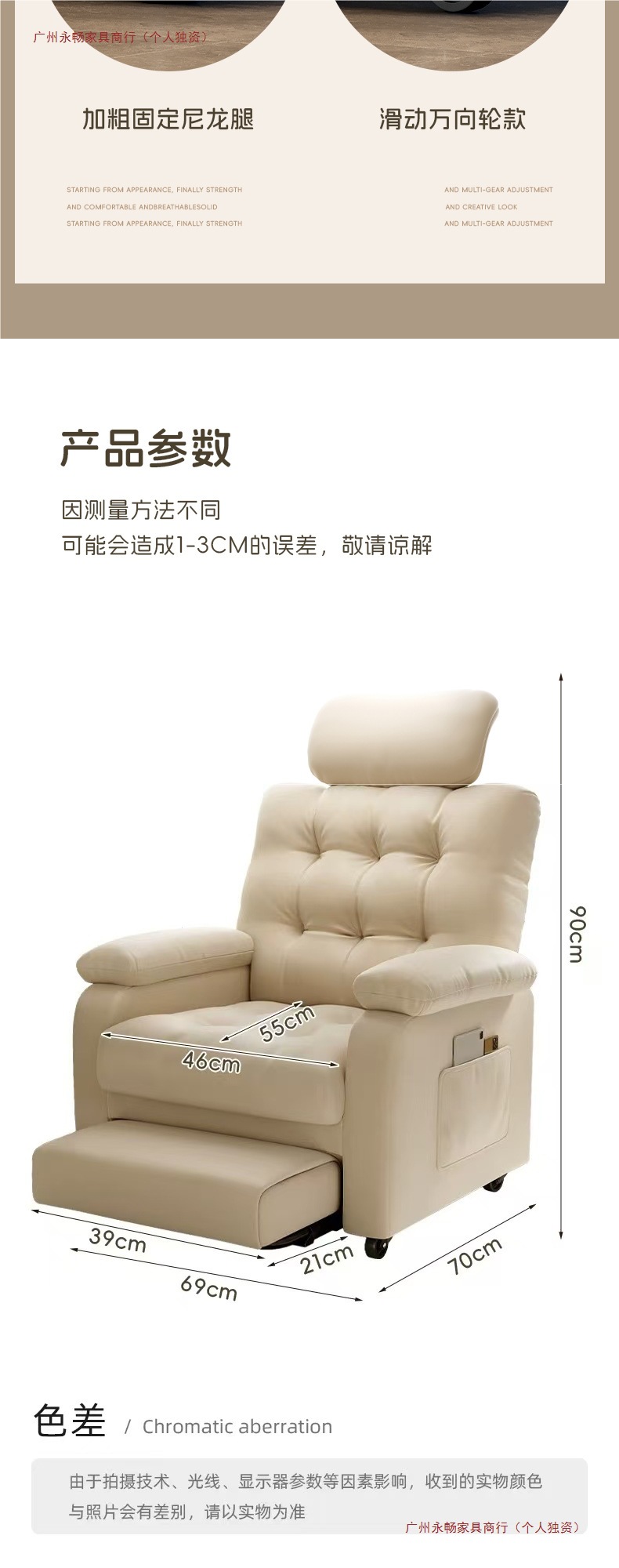 • [고정형 플래그십 모델] - 오프화이트 - 등받이 조절 가능 - 리프팅 헤드레스트 - 텔레스코픽 발판 - 두꺼워진 고탄성 스펀지,