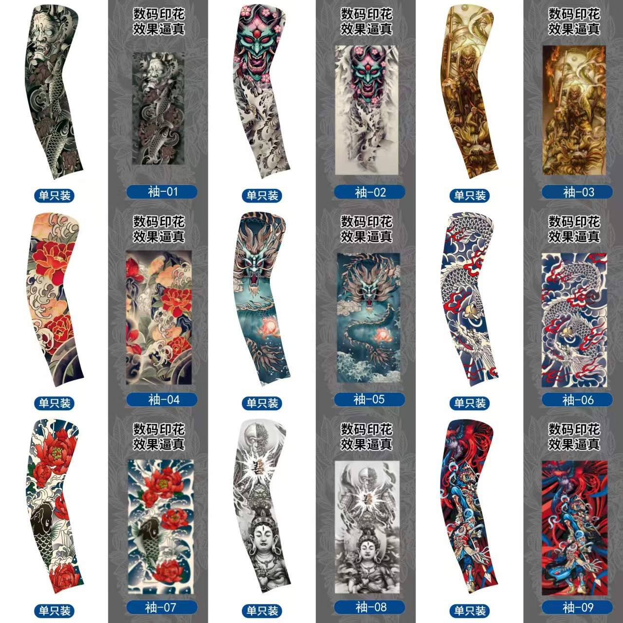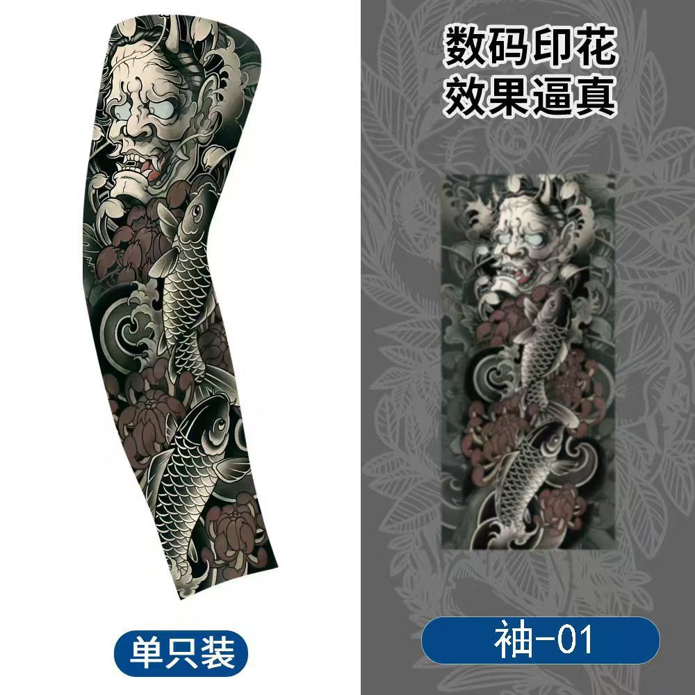 여름 자외선 차단제 원활한 사이클링 아이스 슬리브 속건성 통기성 얼음 실크 팔 슬리브 남성용 꽃 팔 문신 프린트 문신 슬리브스토어 가기