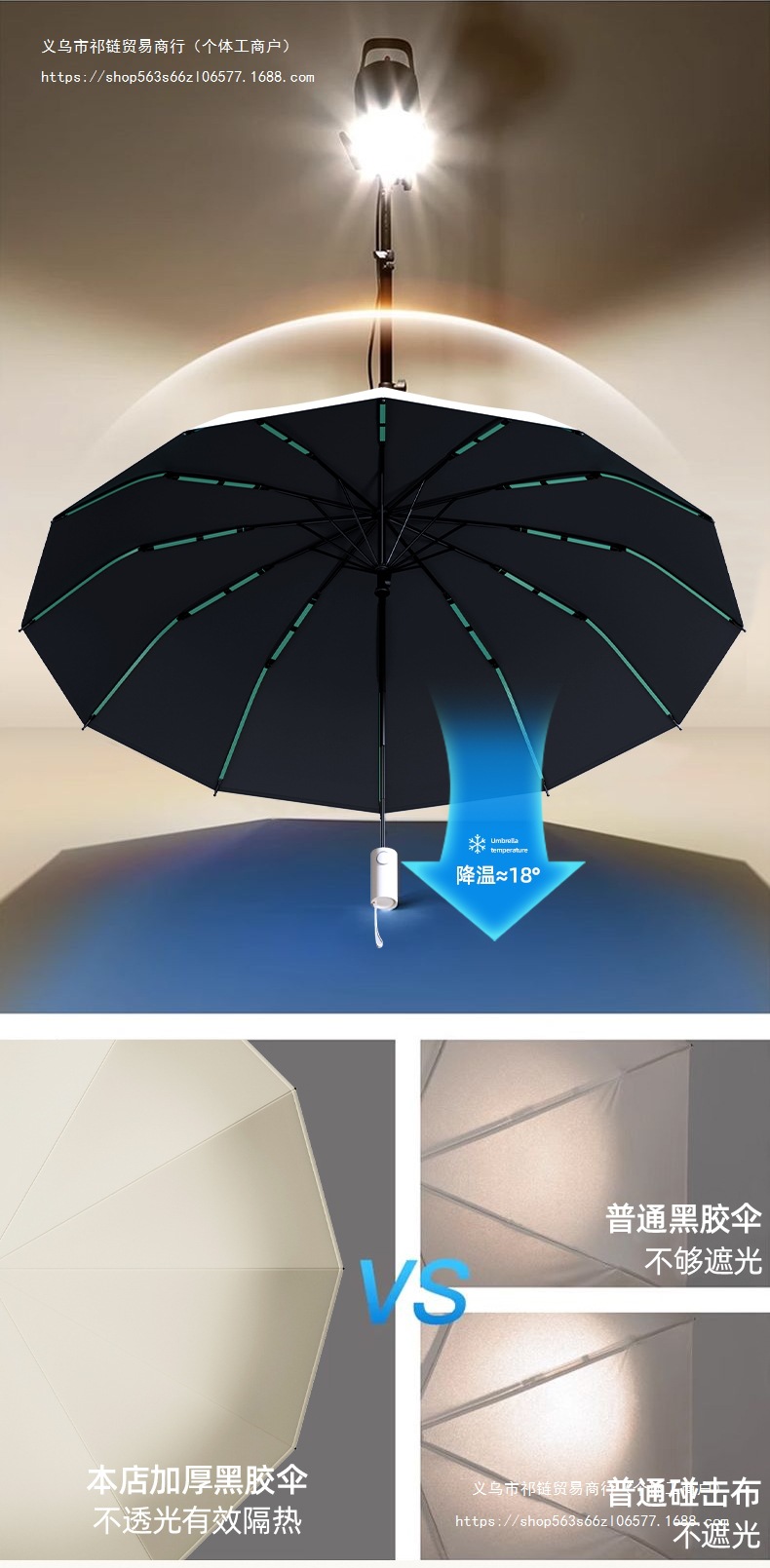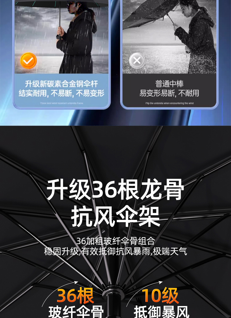 • [12본 반동방지 모델 + 36본 강력 방풍 + 햇빛차단 및 비] 비즈니스 블랙