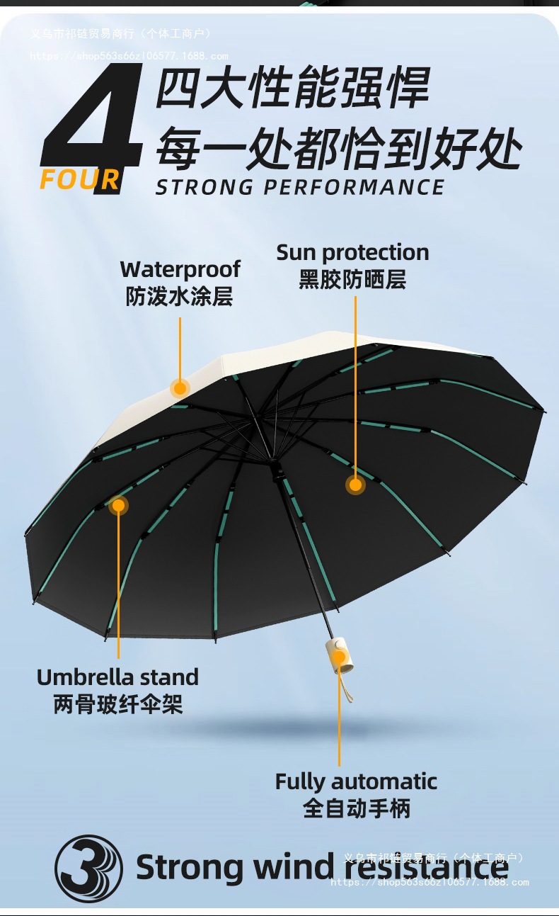 완전 자동 우산, 반동 방지, 점진적 접이식 우산, 자외선 차단, 남성용 및 여성용 비 또는 빛 접이식 우산 2880