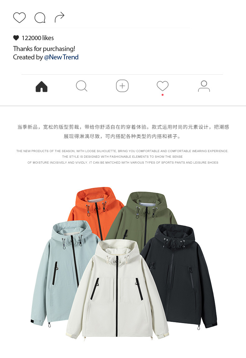 남성용 후드 재킷 2025 가을 새로운 트렌디 브랜드 방풍 커플 탑 여성용 캐주얼 스포츠 재킷스토어 가기
