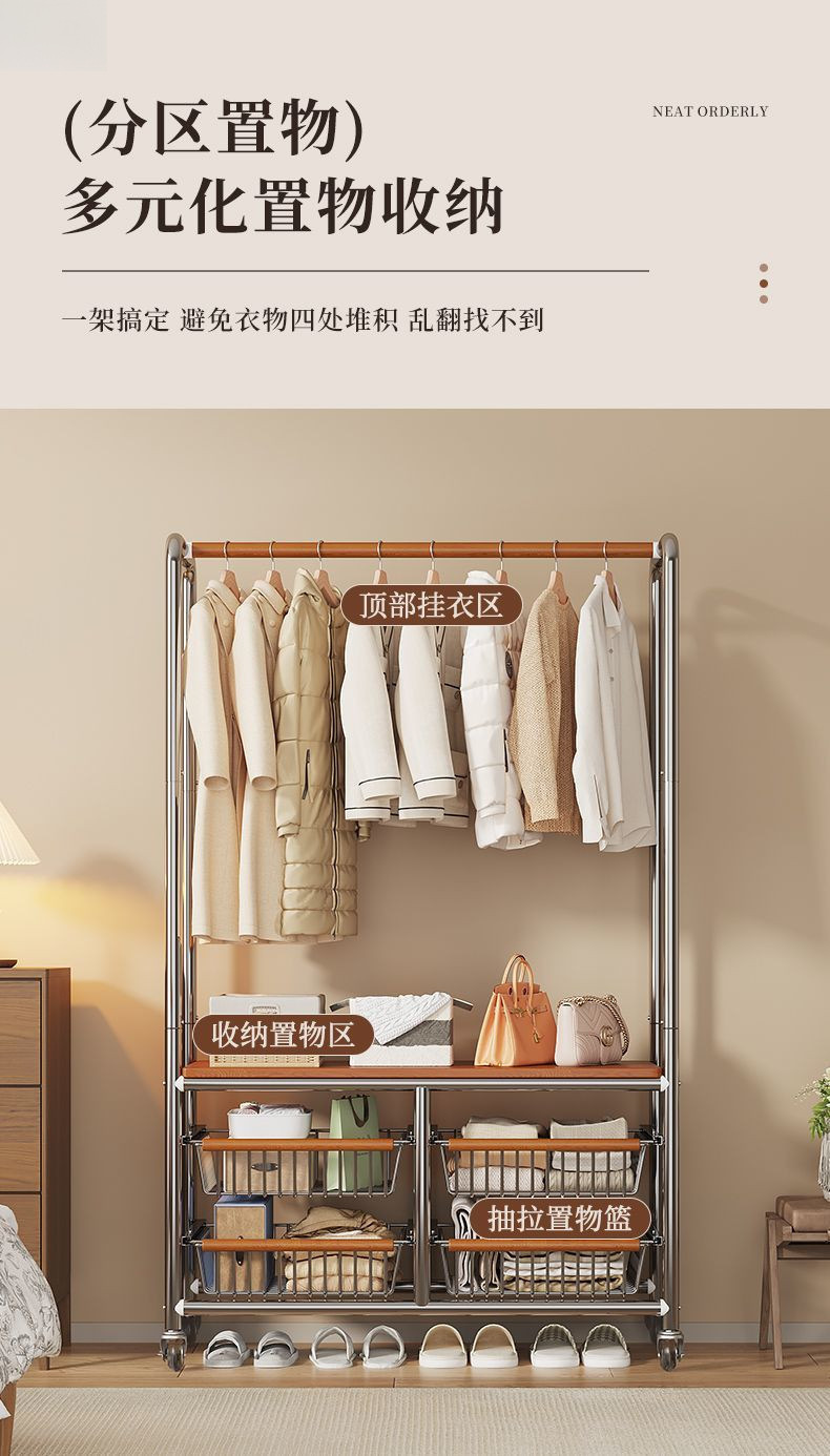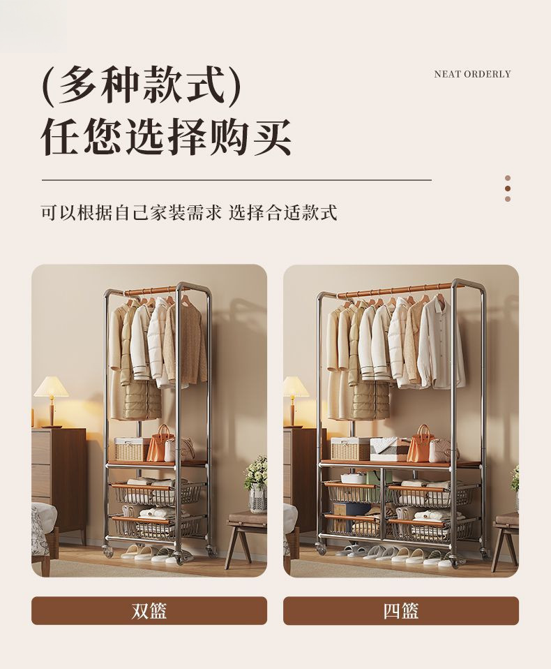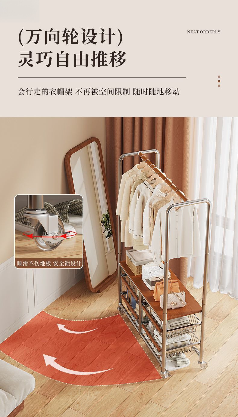 탄소강 옷걸이 새로운 중국 스타일의 가벼운 럭셔리 중고 옷걸이 침실 스테인레스 스틸 홈 스토리지 바닥 스탠딩 모바일 옷걸이