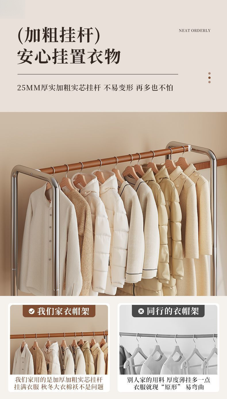 탄소강 옷걸이 새로운 중국 스타일의 가벼운 럭셔리 중고 옷걸이 침실 스테인레스 스틸 홈 스토리지 바닥 스탠딩 모바일 옷걸이스토어 가기