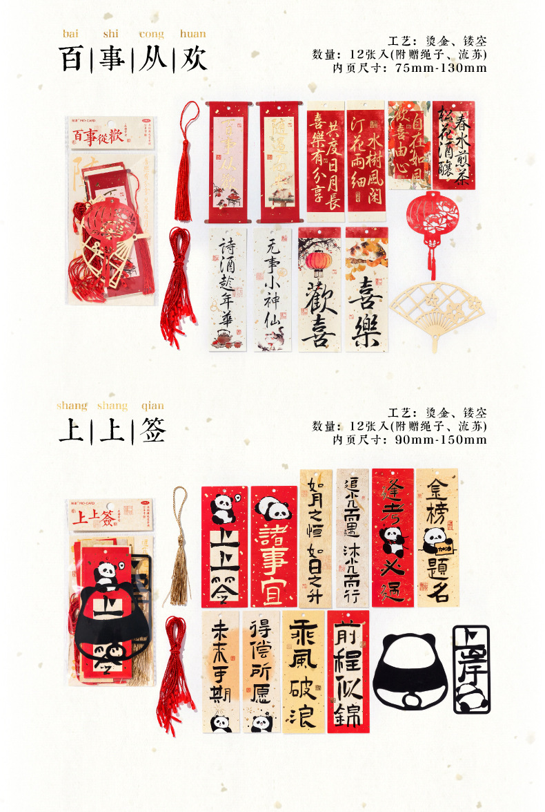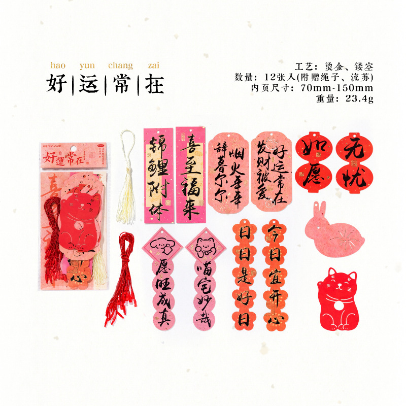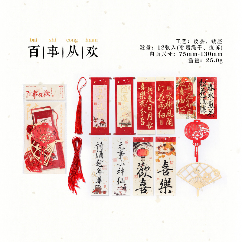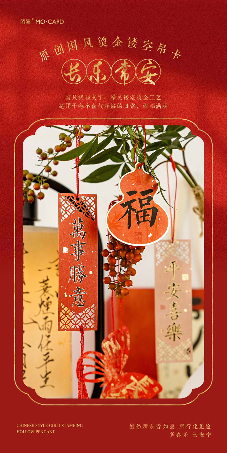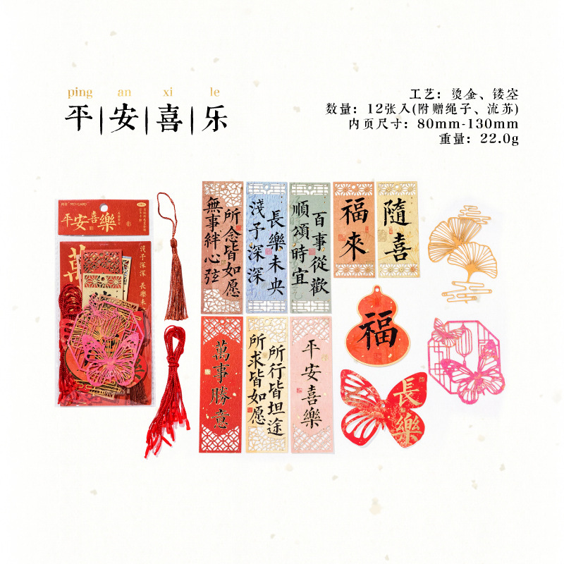 Momo Changle Chang'an 시리즈 핫 스탬핑 중공 교수형 카드 중국 스타일 텍스트 홈 장식품 책갈피 끈 펜던트스토어 가기