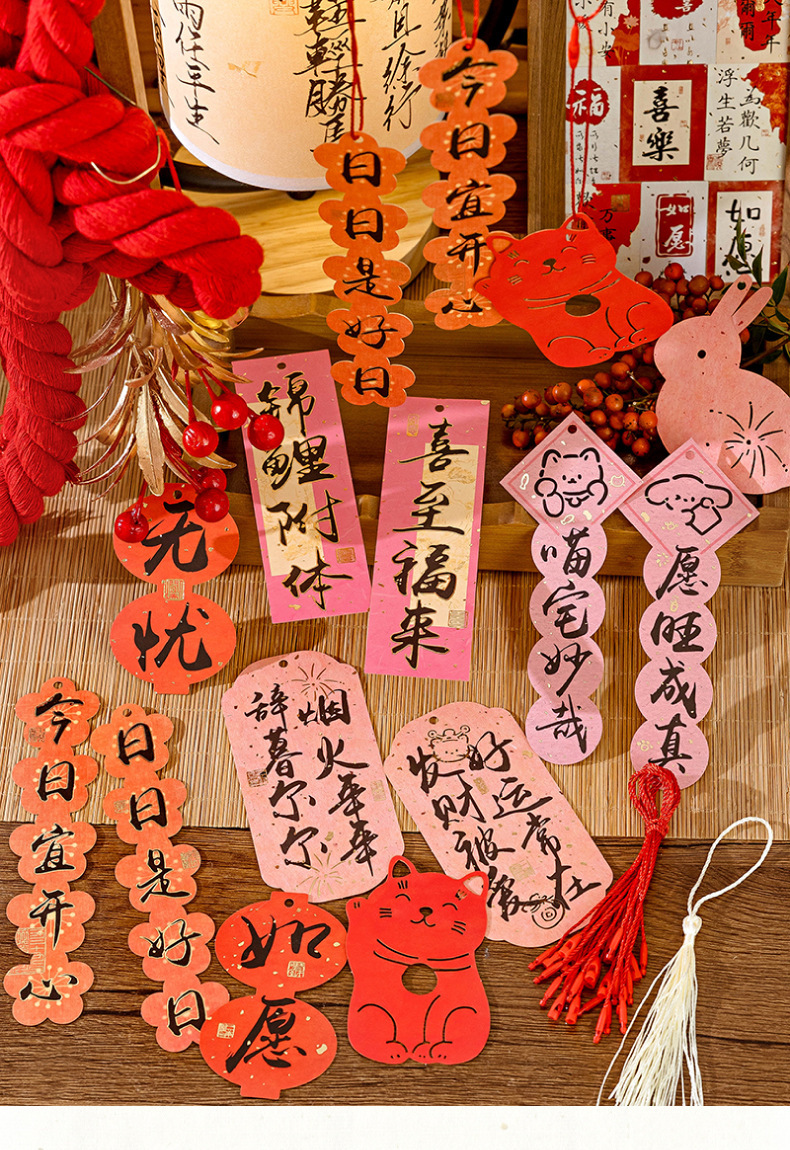 Momo Changle Chang'an 시리즈 핫 스탬핑 중공 교수형 카드 중국 스타일 텍스트 홈 장식품 책갈피 끈 펜던트