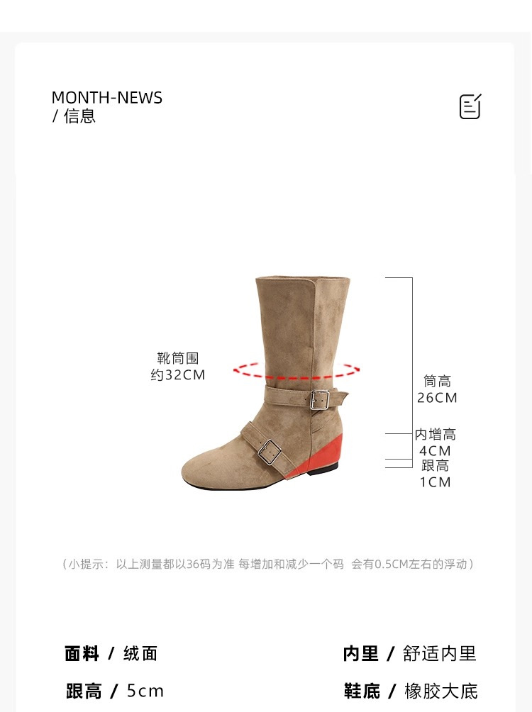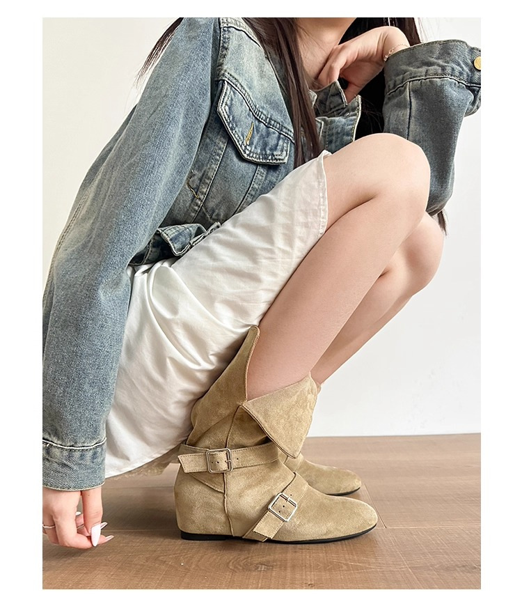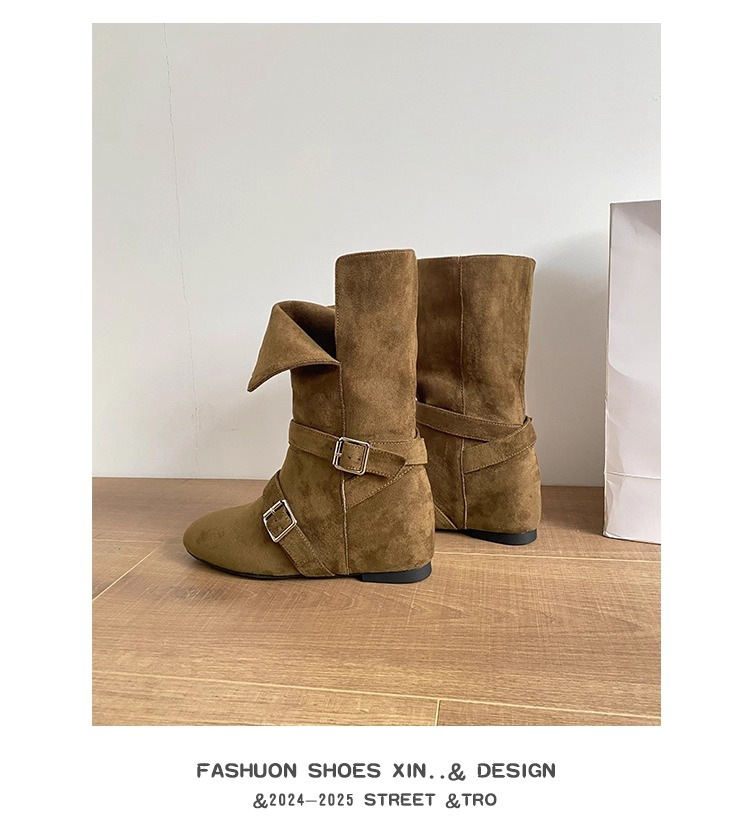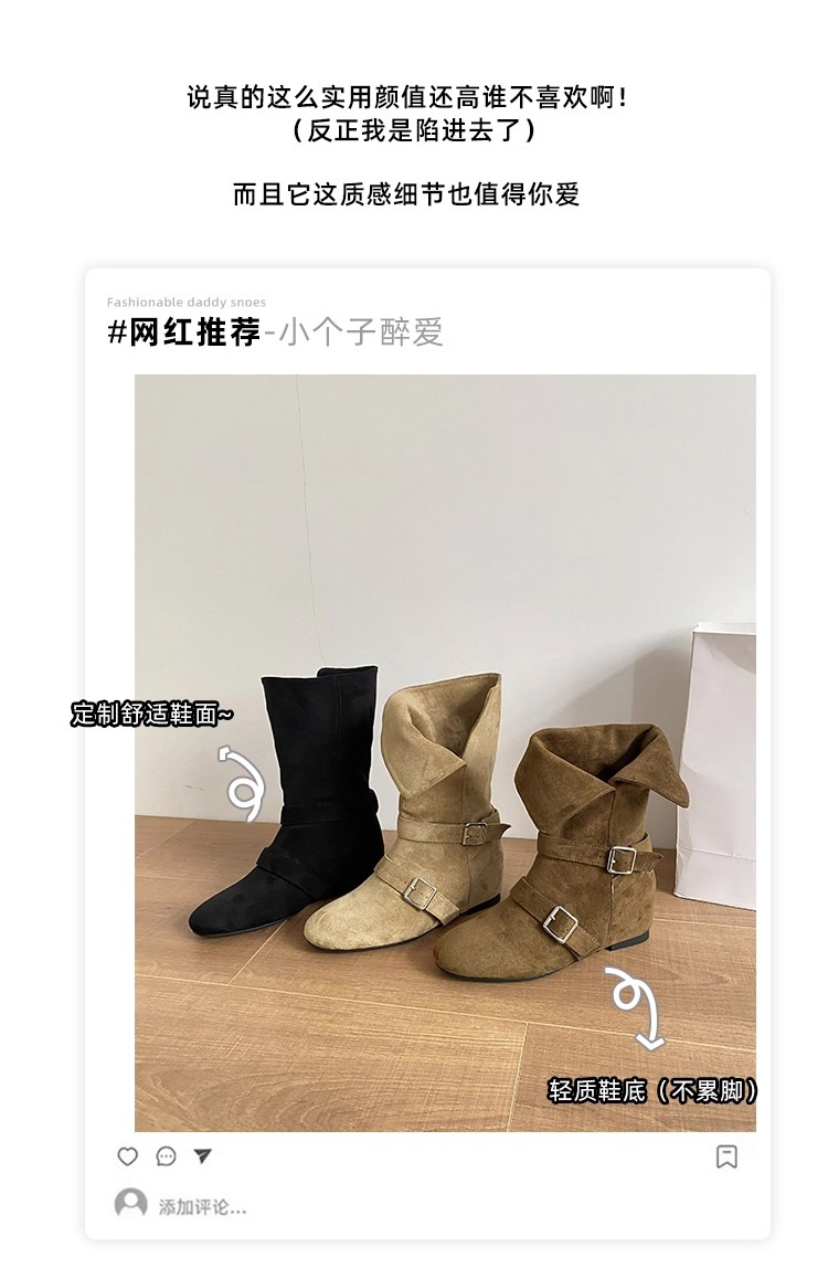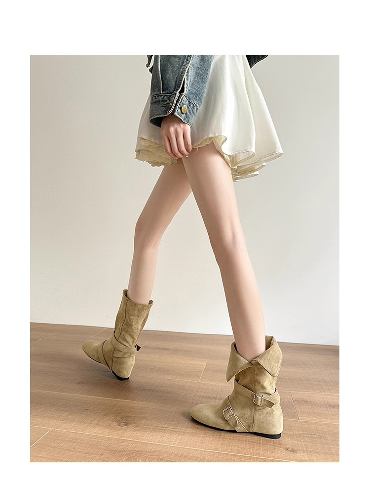 여성을 위한 레트로 벨트 버클 미드 튜브 부츠 2025 가을 겨울 새로운 슬림하고 다재다능한 웨스턴 부츠 내부 높이 증가 마틴 부츠스토어 가기