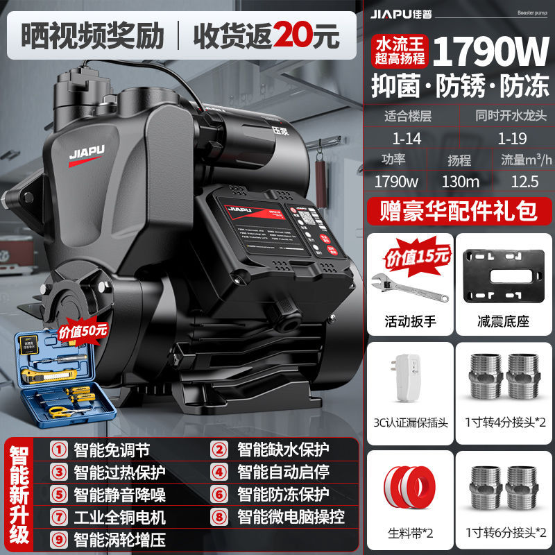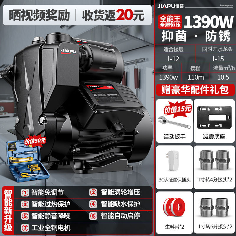 Jia Pu 부스터 펌프 가정용 220V 수돗물 파이프라인 가압 펌프 태양열 온수기 자체 흡입 자동 펌프스토어 가기