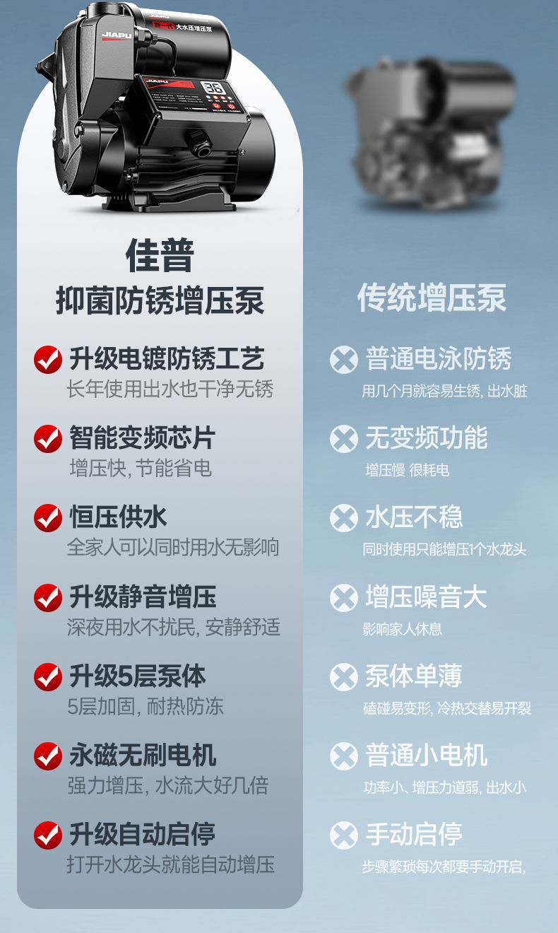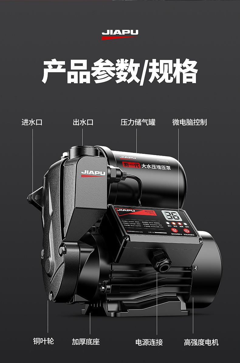 Jia Pu 부스터 펌프 가정용 220V 수돗물 파이프라인 가압 펌프 태양열 온수기 자체 흡입 자동 펌프