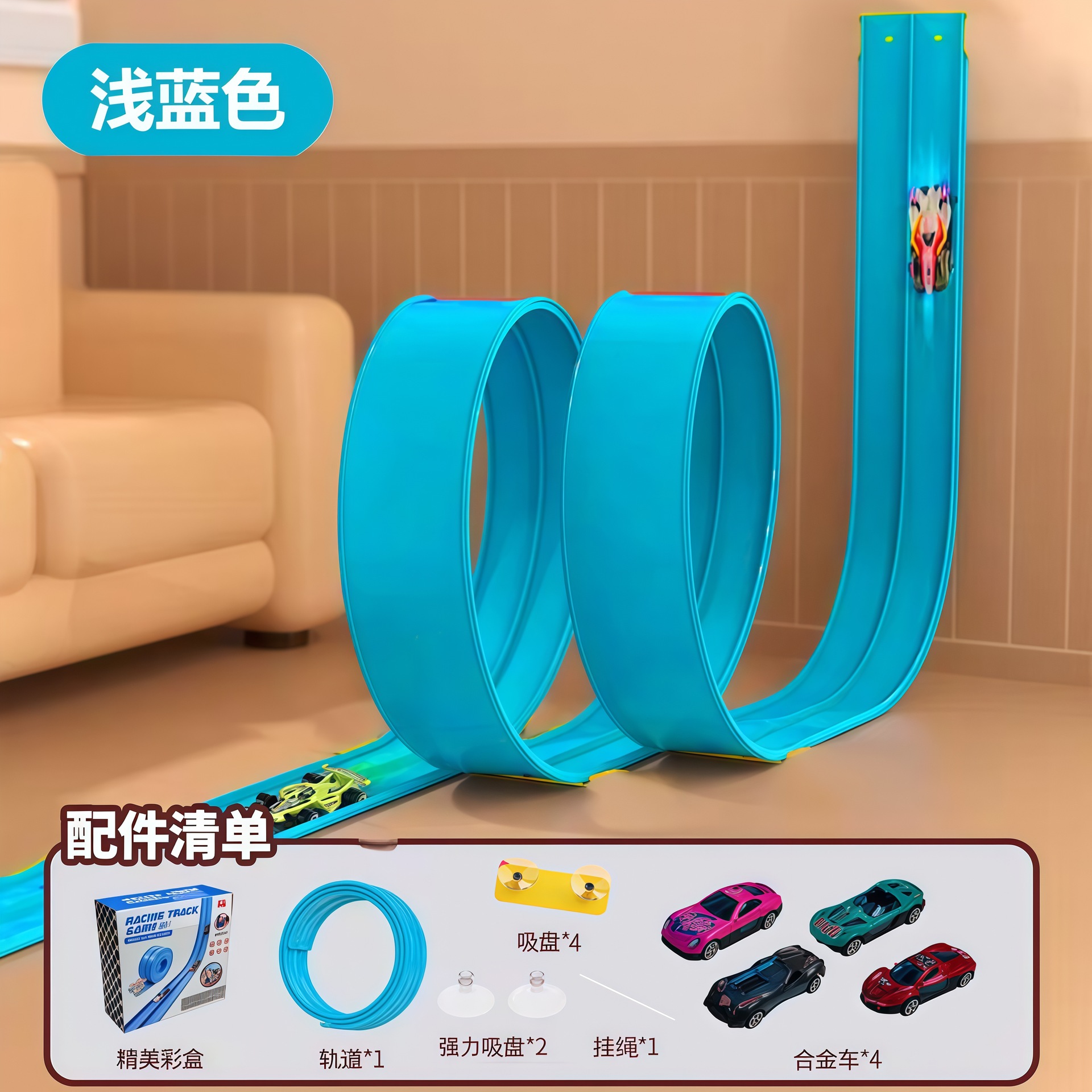아마존 신형 합금 자동차 모델 탄성 경사로 장난감 흡착판 포함 DIY 어린이 경주용 트랙 장난감