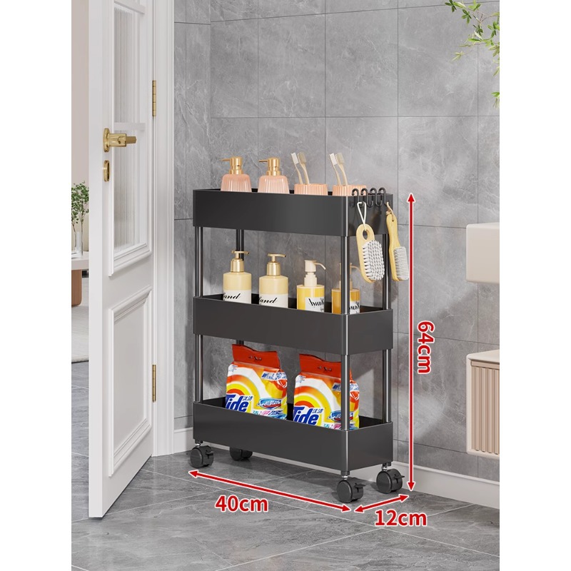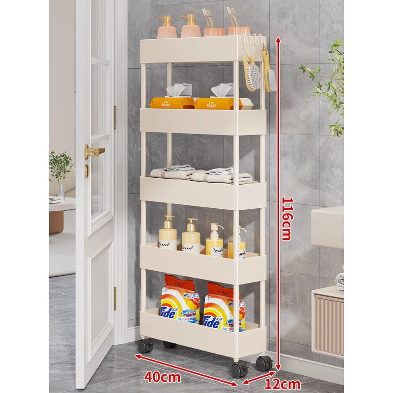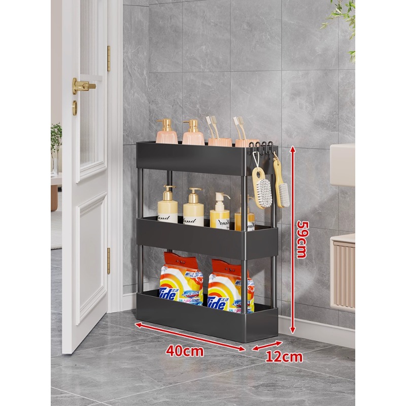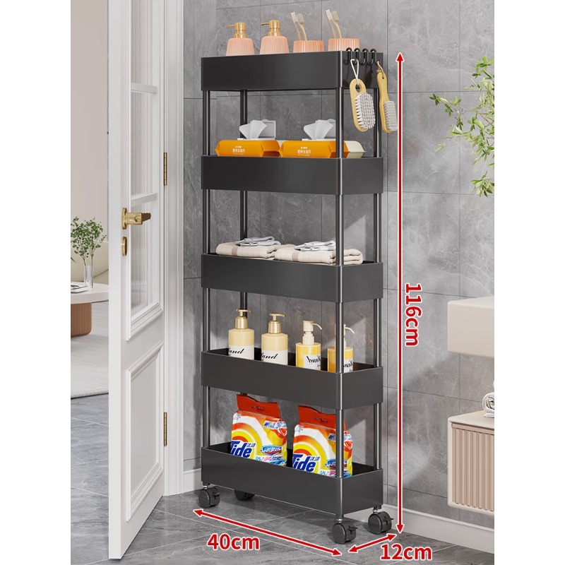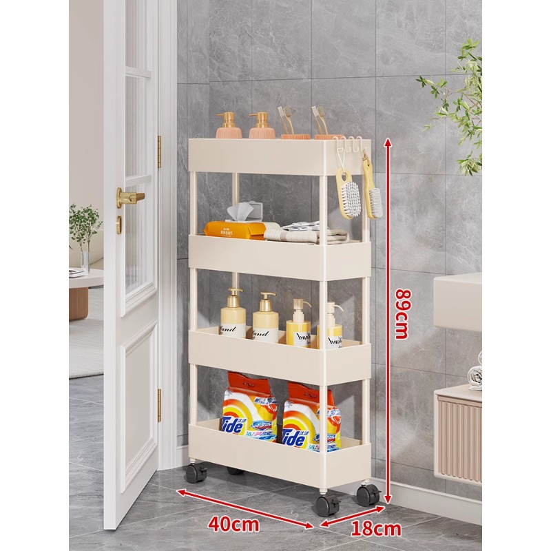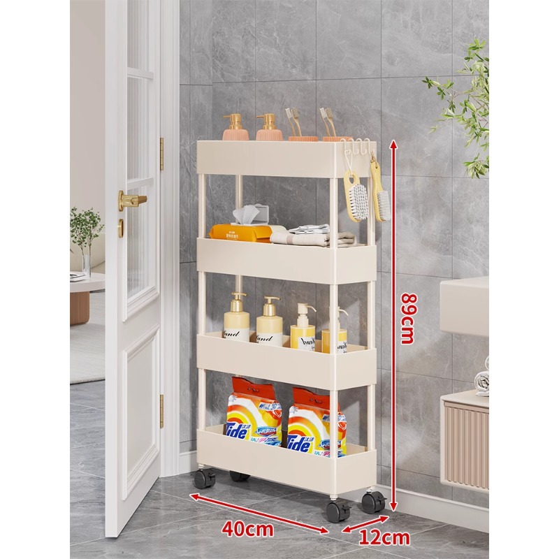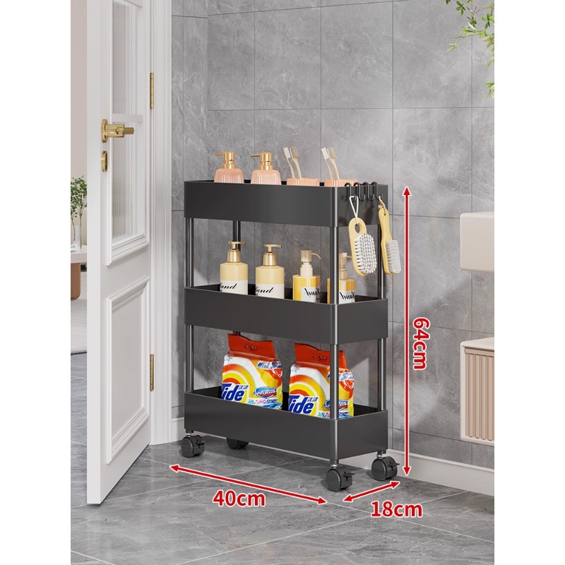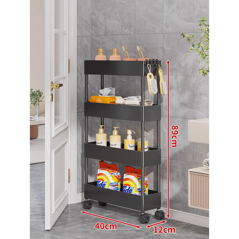 문 뒤에 있는 초박형 수납 선반, 욕실 다층 바닥에서 천장까지 이어지는 이동식 트롤리, 욕실 간격이 매우 좁은 수납 선반스토어 가기