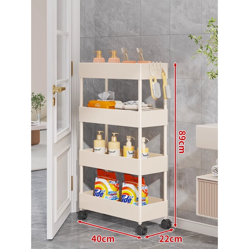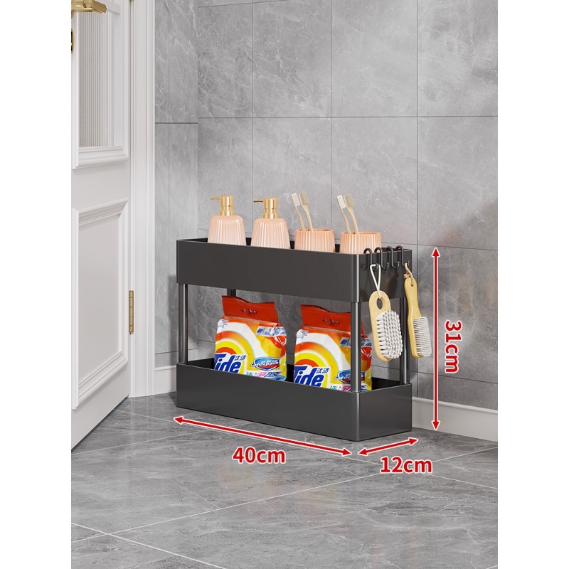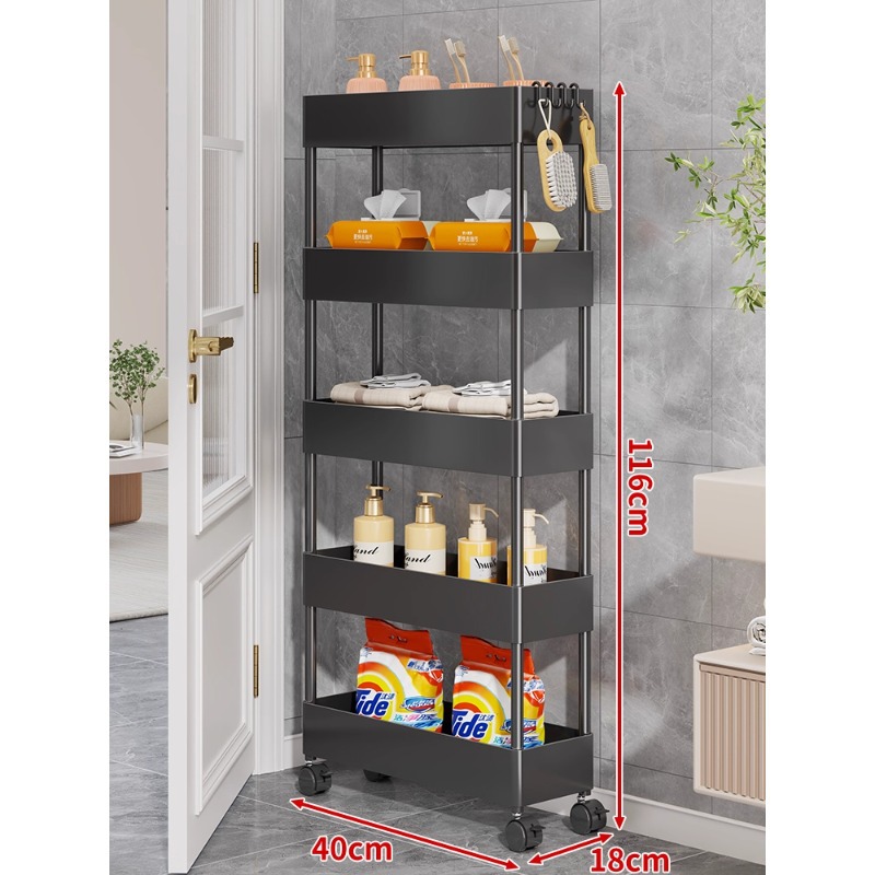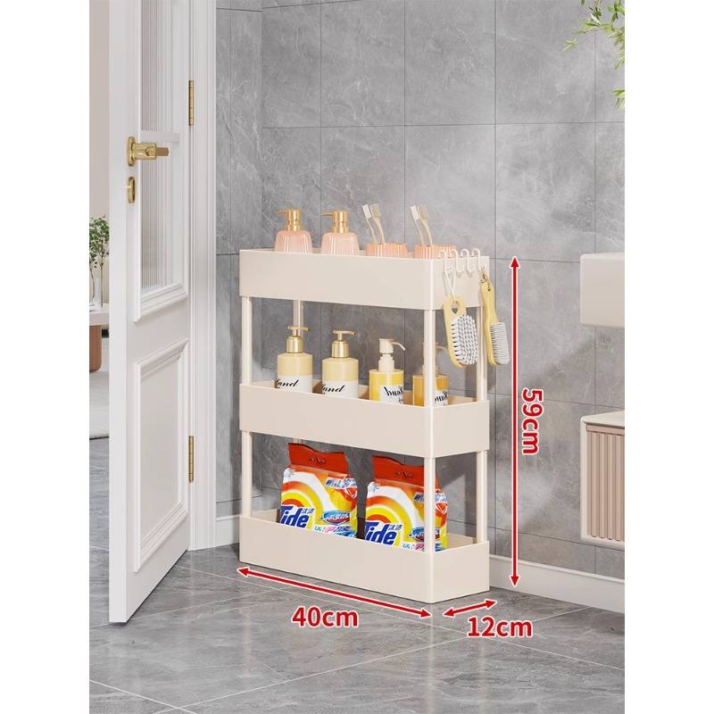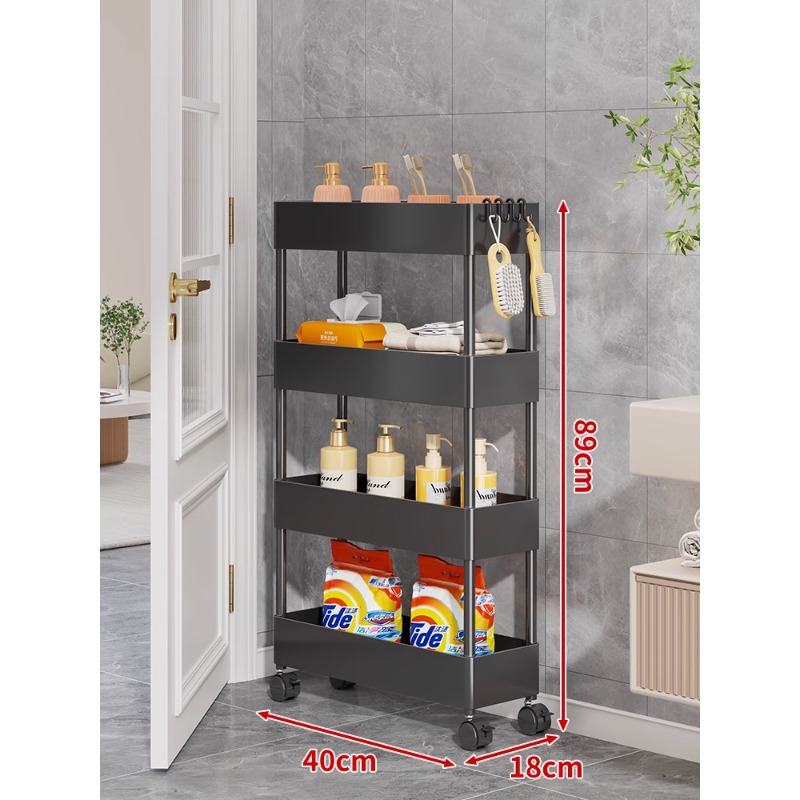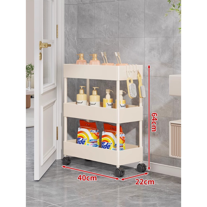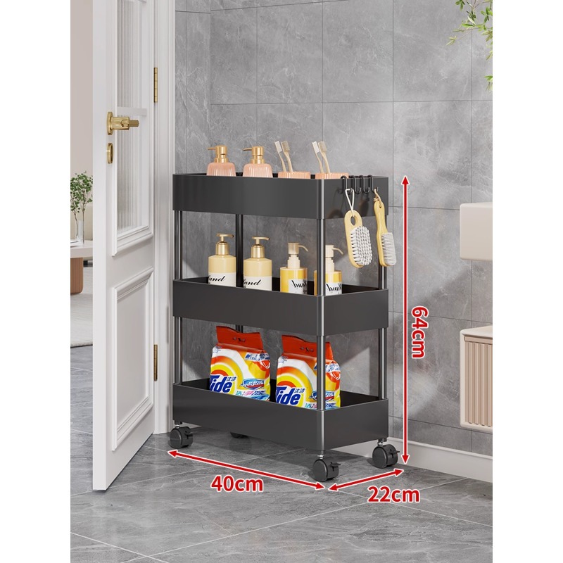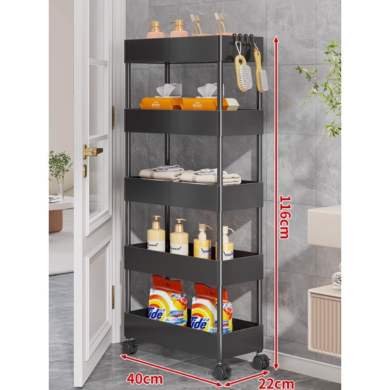 문 뒤에 있는 초박형 수납 선반, 욕실 다층 바닥에서 천장까지 이어지는 이동식 트롤리, 욕실 간격이 매우 좁은 수납 선반스토어 가기