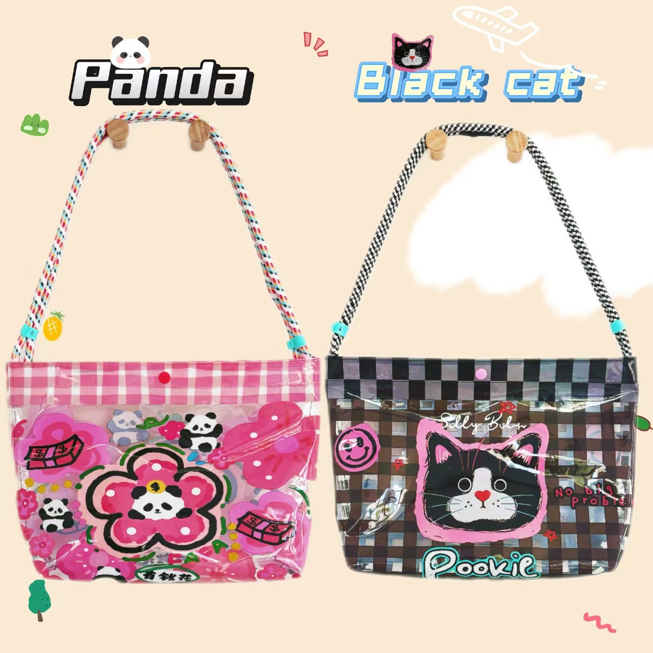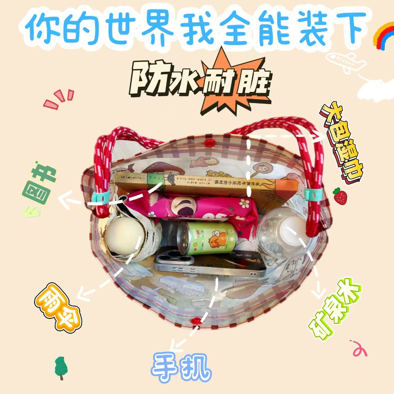 새로운 PVC 만화 인쇄 핸드백 패션 투명 쇼핑 토트 백 대용량 비치 젤리 숄더 백