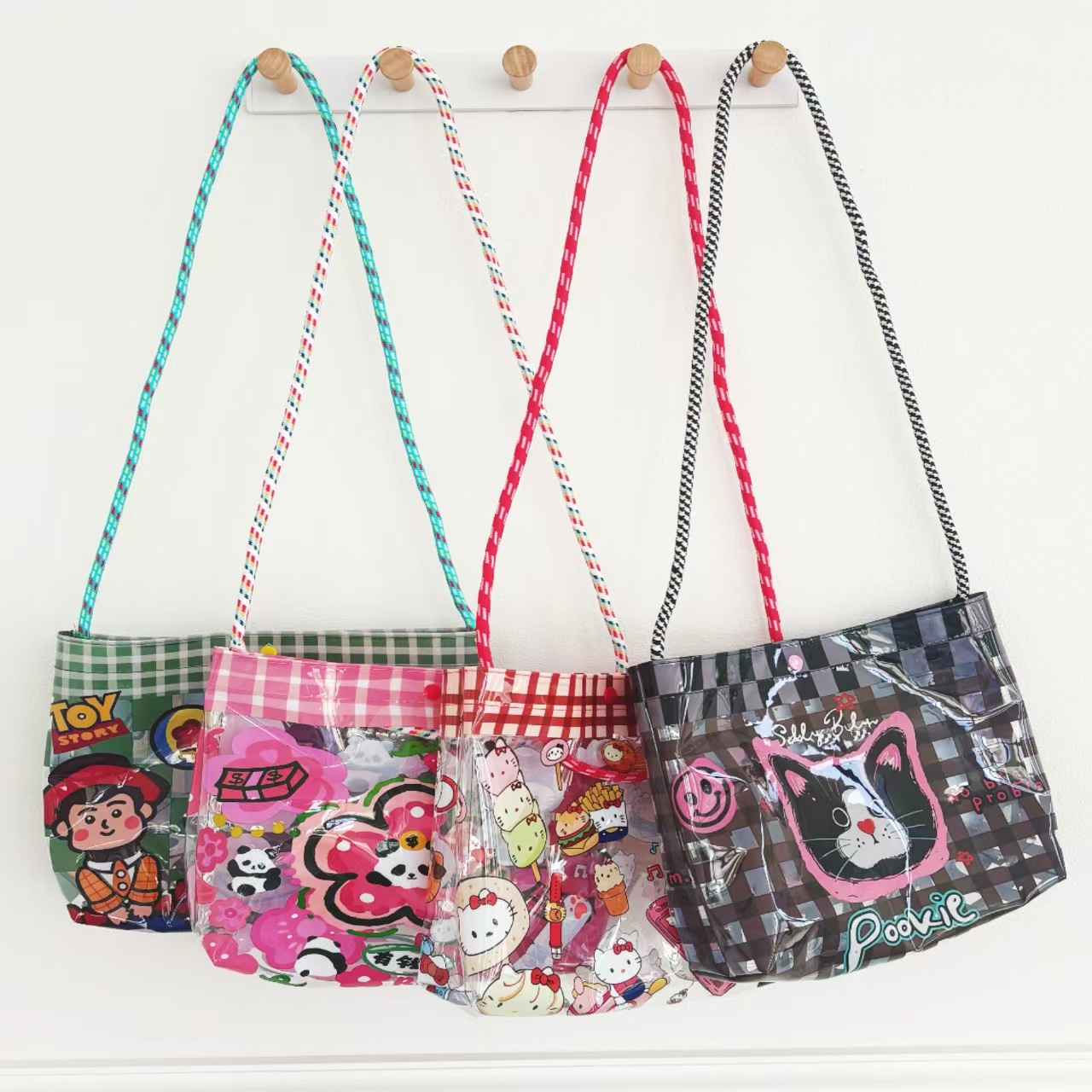 새로운 PVC 만화 인쇄 핸드백 패션 투명 쇼핑 토트 백 대용량 비치 젤리 숄더 백스토어 가기