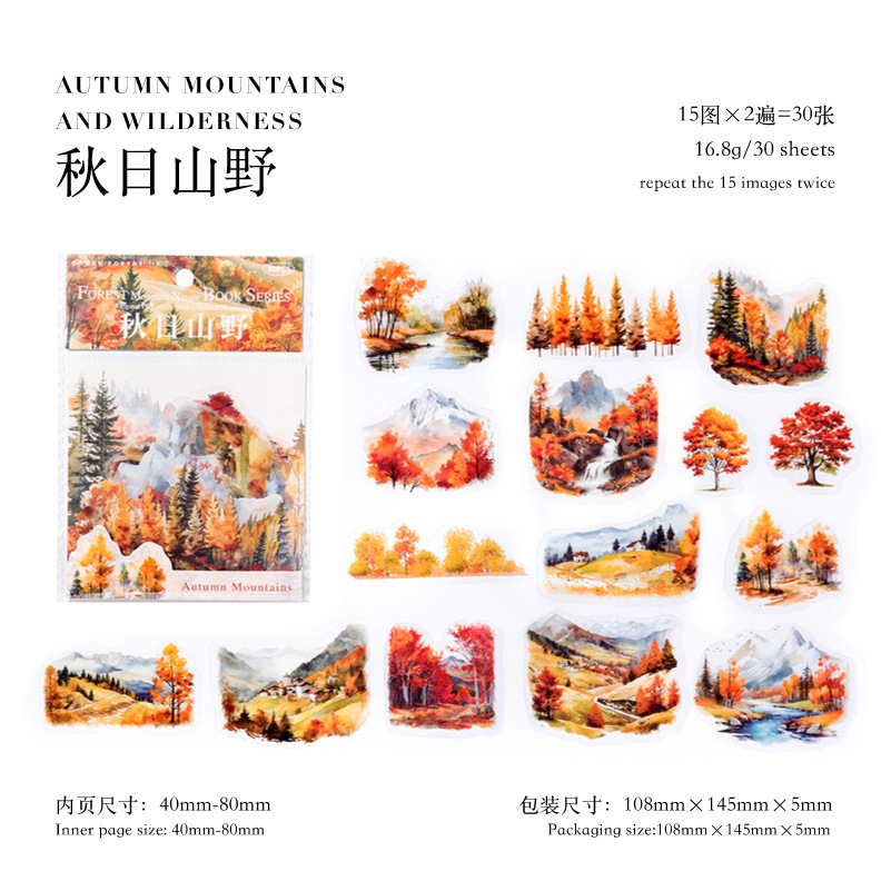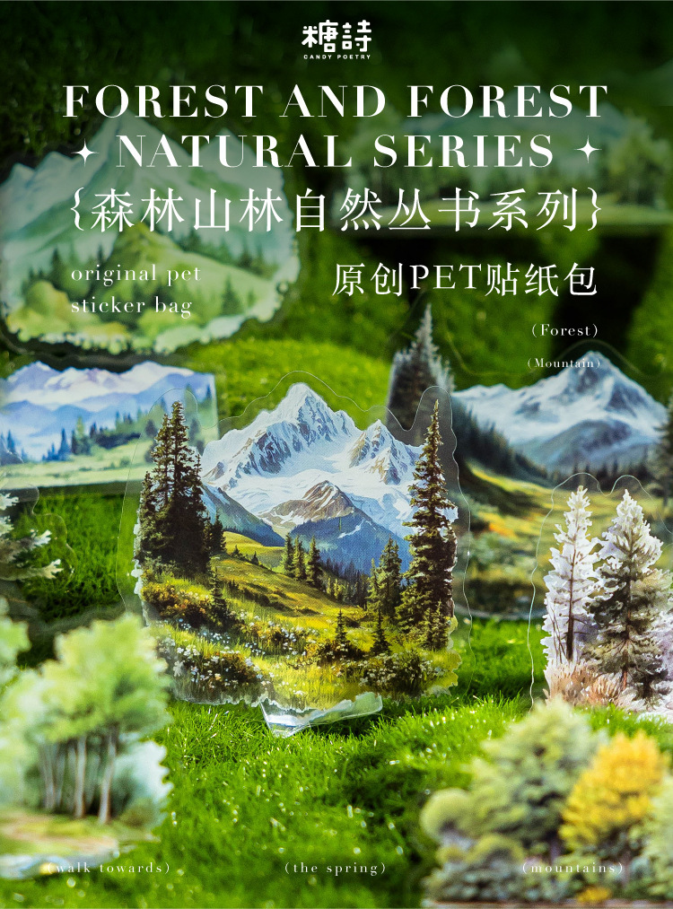 Sugar Poetry Forest Mountain Nature 시리즈 PET 흰색 잉크 스티커 팩 6 스타일 30 자연 조경 스티커스토어 가기
