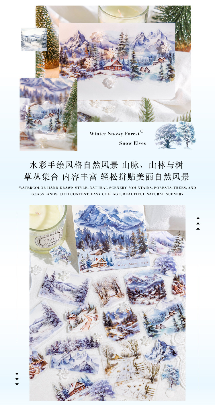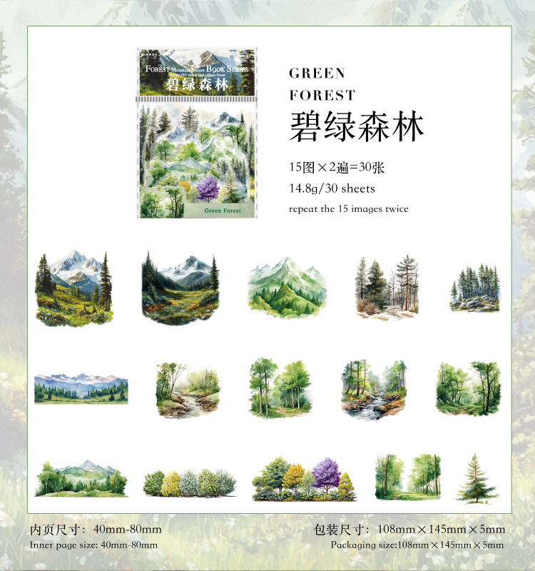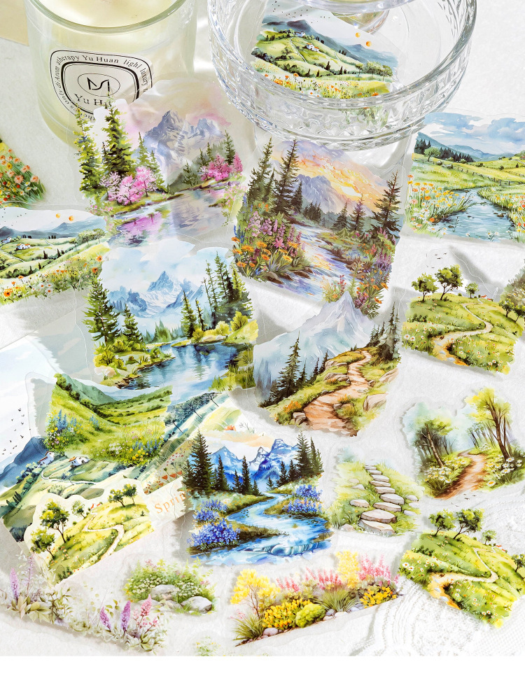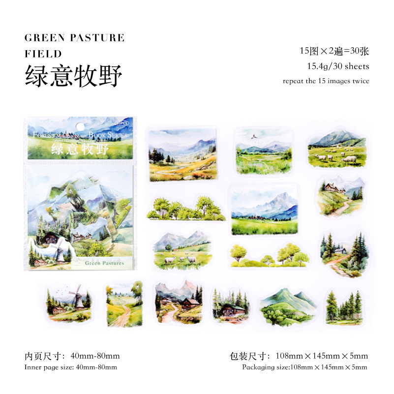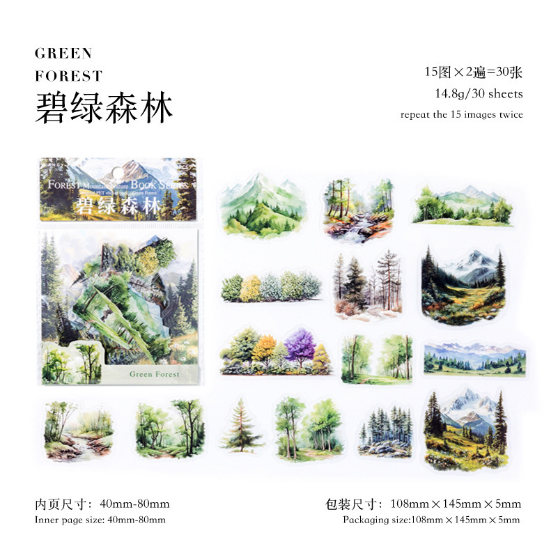 Sugar Poetry Forest Mountain Nature 시리즈 PET 흰색 잉크 스티커 팩 6 스타일 30 자연 조경 스티커