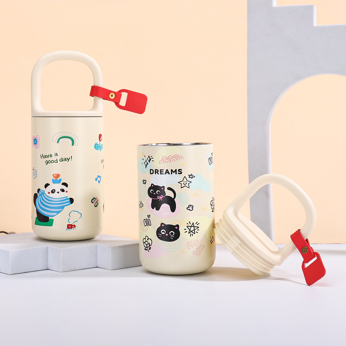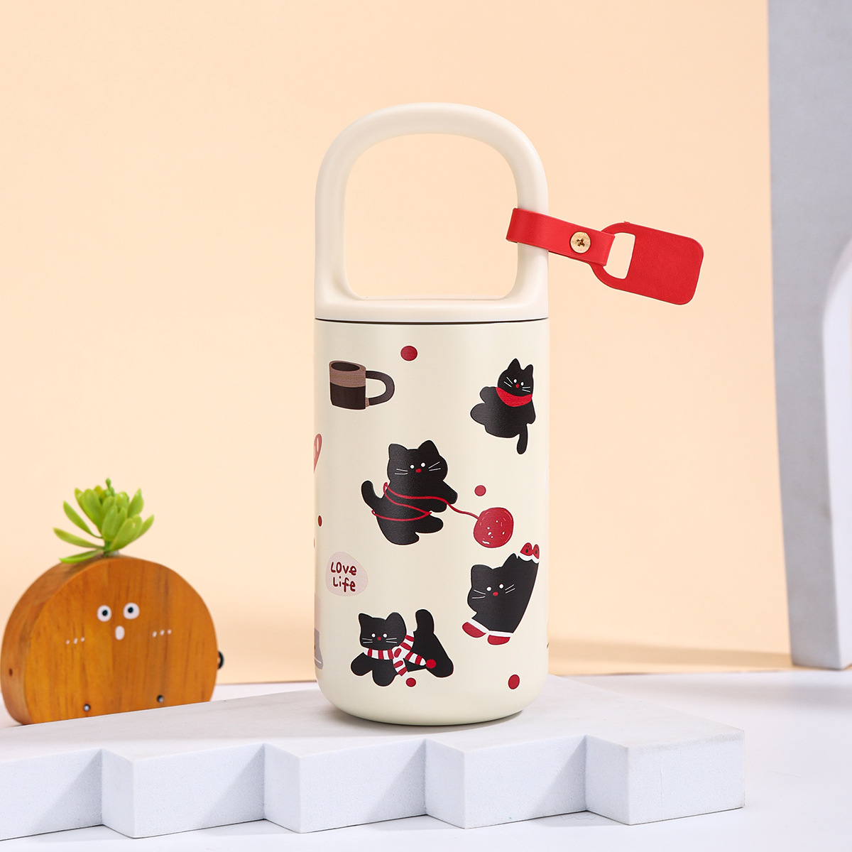 인기있는 귀여운 만화 새끼 고양이 휴대용 컵 316 스테인레스 스틸 어린이 보온병 컵 야외 대용량 커피 컵스토어 가기