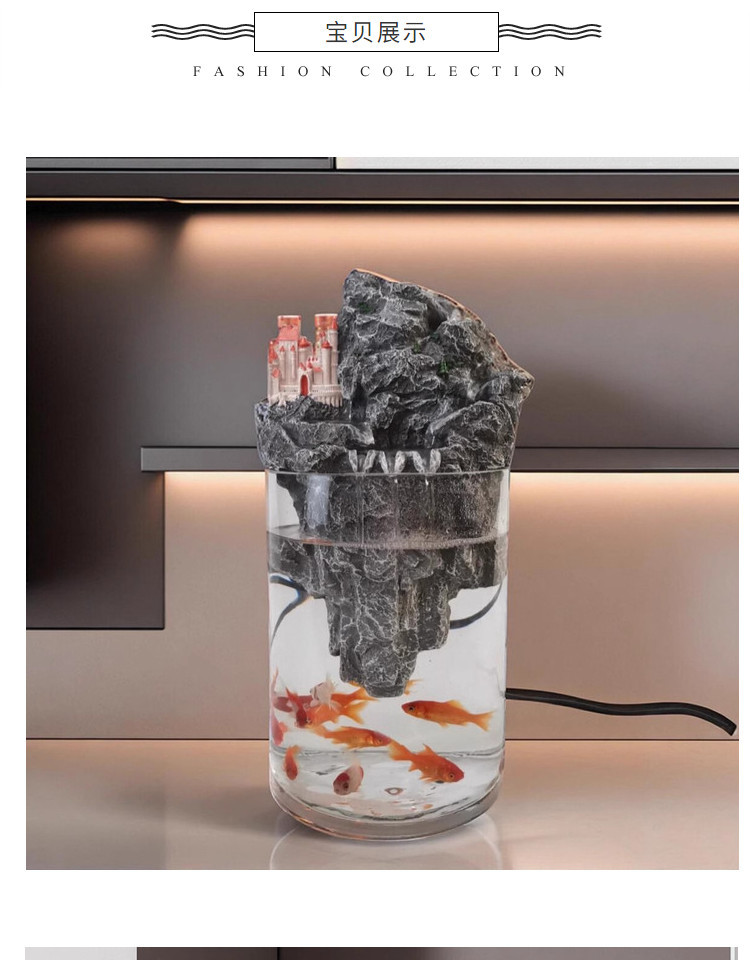 집 안의 인공산수, 분수, 거실, 침실, 유리 조명 어항, 사무실 책상 장식품, 수제