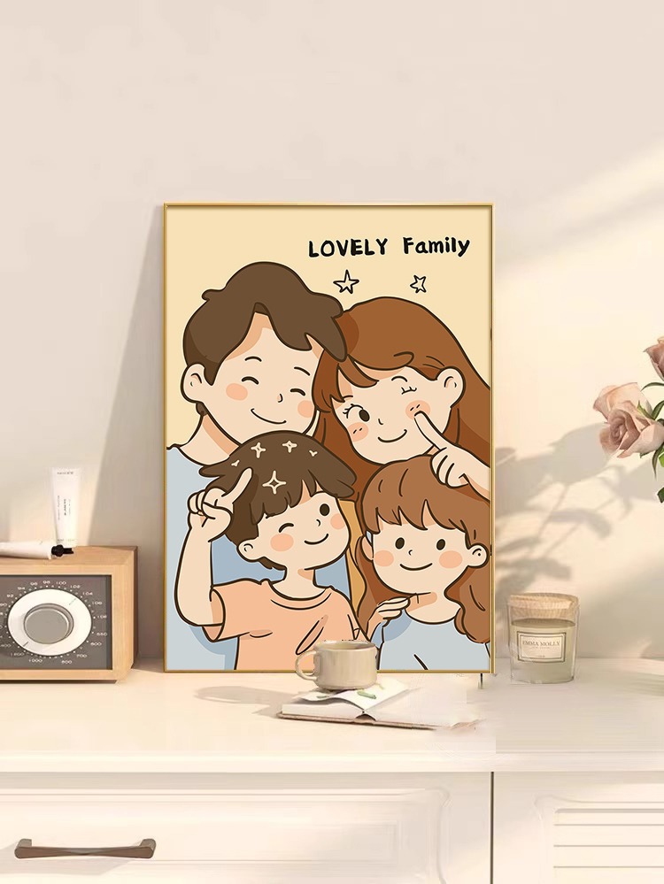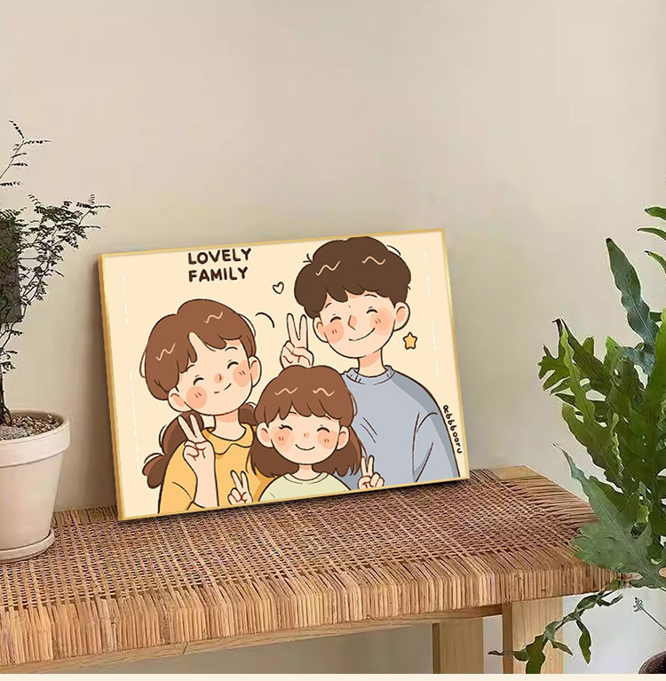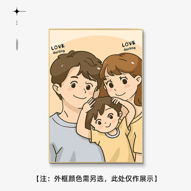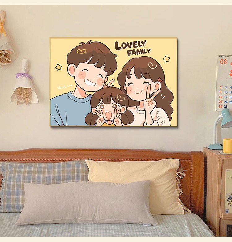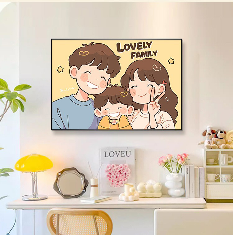 3인 가족을 위한 크림 스타일 장식 그림, 거실 걸이 그림, 침실 침대 옆 탁자, 탁상 장식 그림, 어린이 방 벽화