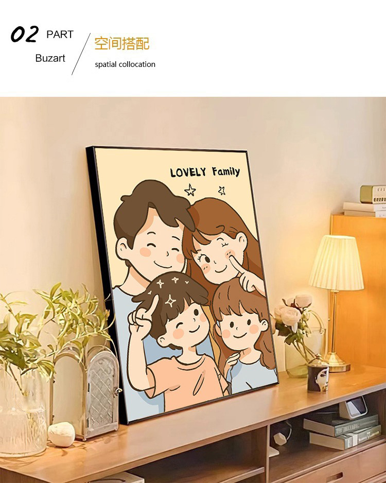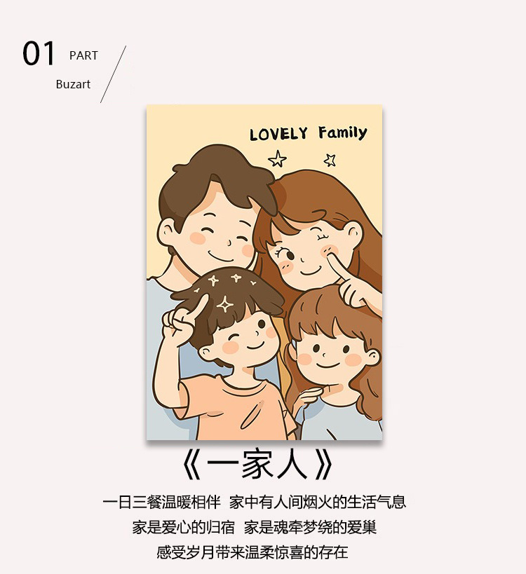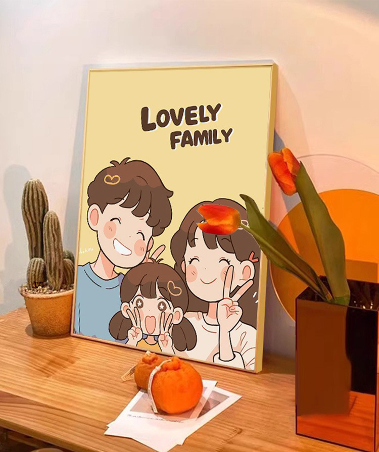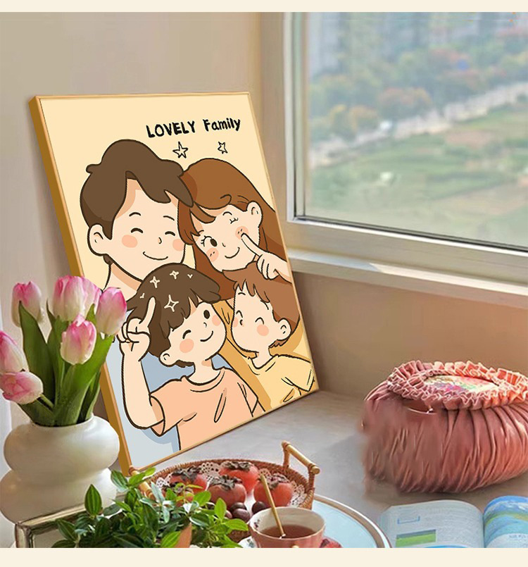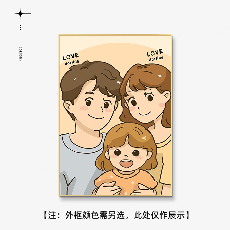 3인 가족을 위한 크림 스타일 장식 그림, 거실 걸이 그림, 침실 침대 옆 탁자, 탁상 장식 그림, 어린이 방 벽화