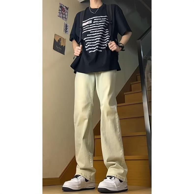 남성용 라이트 블루 바이브 채플린 청바지 2025년 여름 새로운 하이 스트리트 핸섬 슬리밍 스트레이트스토어 가기