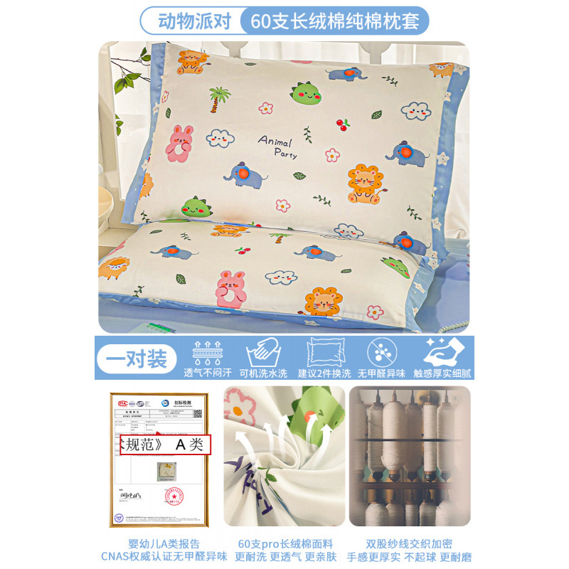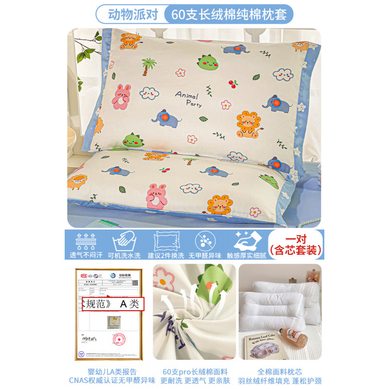 • 60수 면 - 동물 파티 - 작은 넓은 가장자리 [코어 포함] 한 쌍