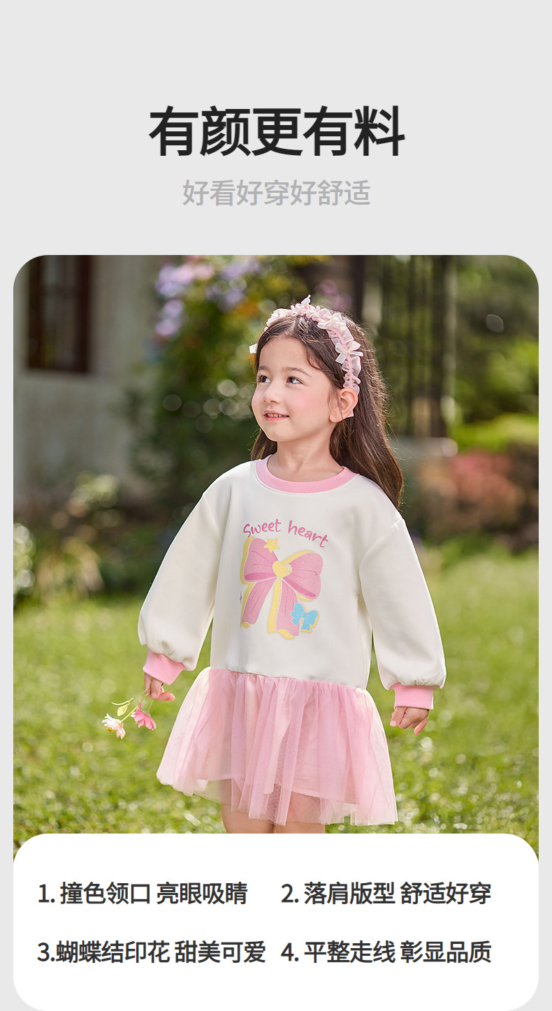 [Yiqi Baby] 여아 드레스 캐주얼하고 다재다능한 아동 가을 탑 긴팔 공주 드레스스토어 가기