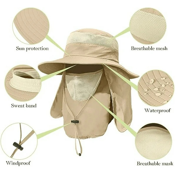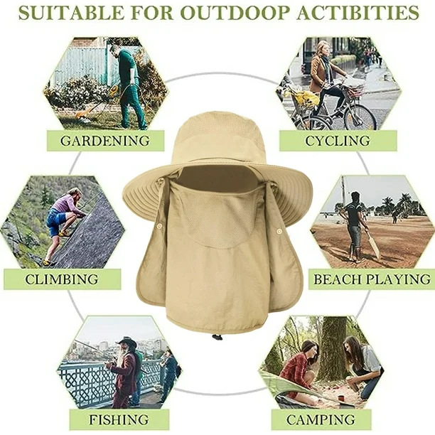 다기능 야외 자외선 차단 낚시 모자, 여름용 탈부착 가능한 자전거 모자, 낚시용 커튼 모자, 자외선 차단 등산 모자