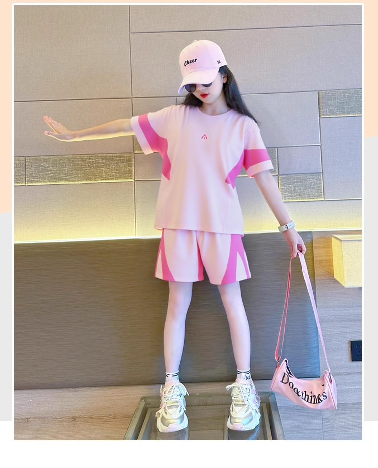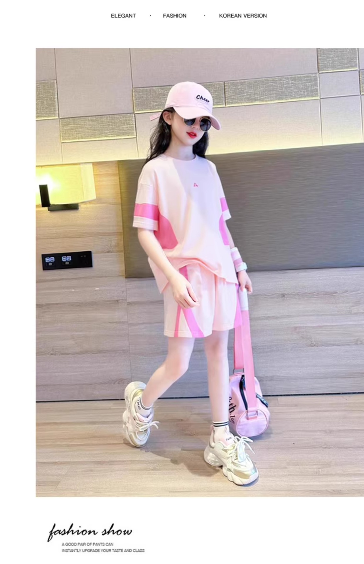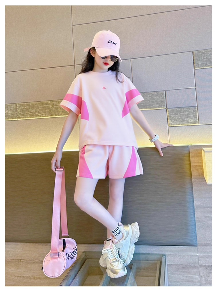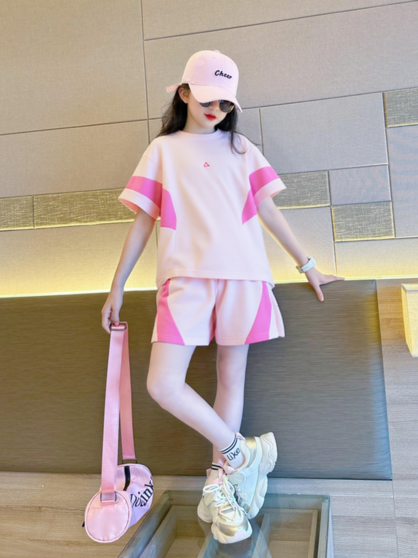 여아 순면 운동복 여름 2025 신상 스타일리시 여름옷 중대형 여아 반팔 반바지 투피스 세트