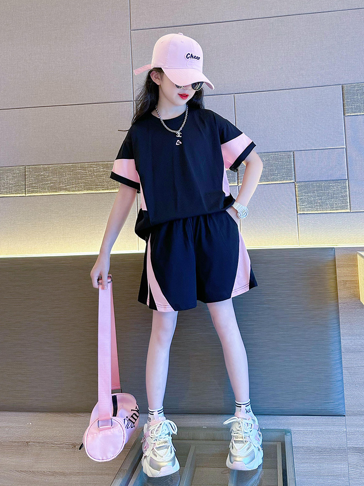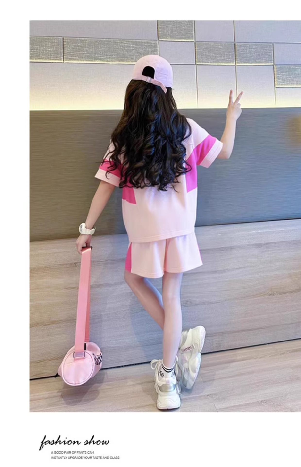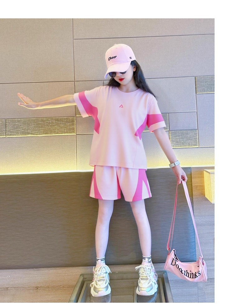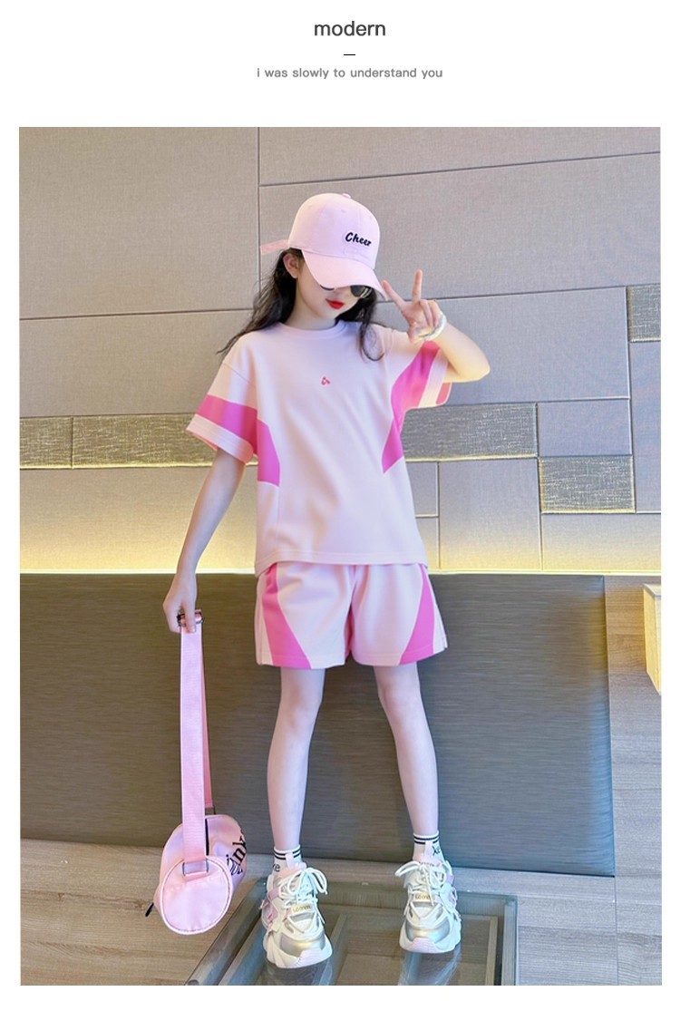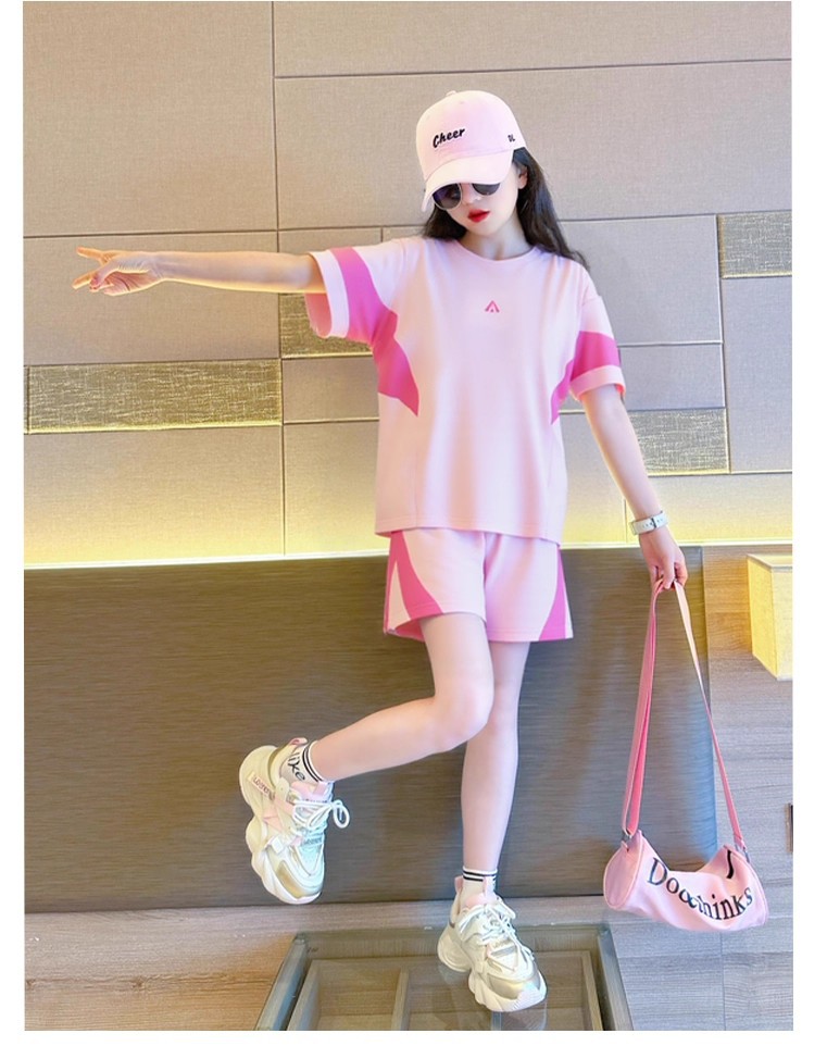 여아 순면 운동복 여름 2025 신상 스타일리시 여름옷 중대형 여아 반팔 반바지 투피스 세트