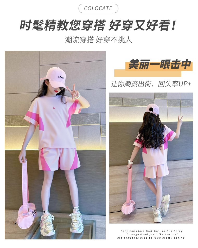 여아 순면 운동복 여름 2025 신상 스타일리시 여름옷 중대형 여아 반팔 반바지 투피스 세트스토어 가기