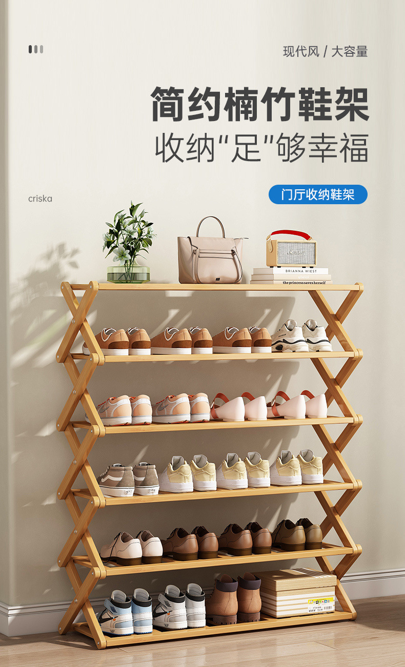 가정용 실내용 다층 대나무 소형 신발장, 인기 있는 새로운 스타일, 접이식 기숙사 간단한 신발장, 새로운 중국 스타일스토어 가기