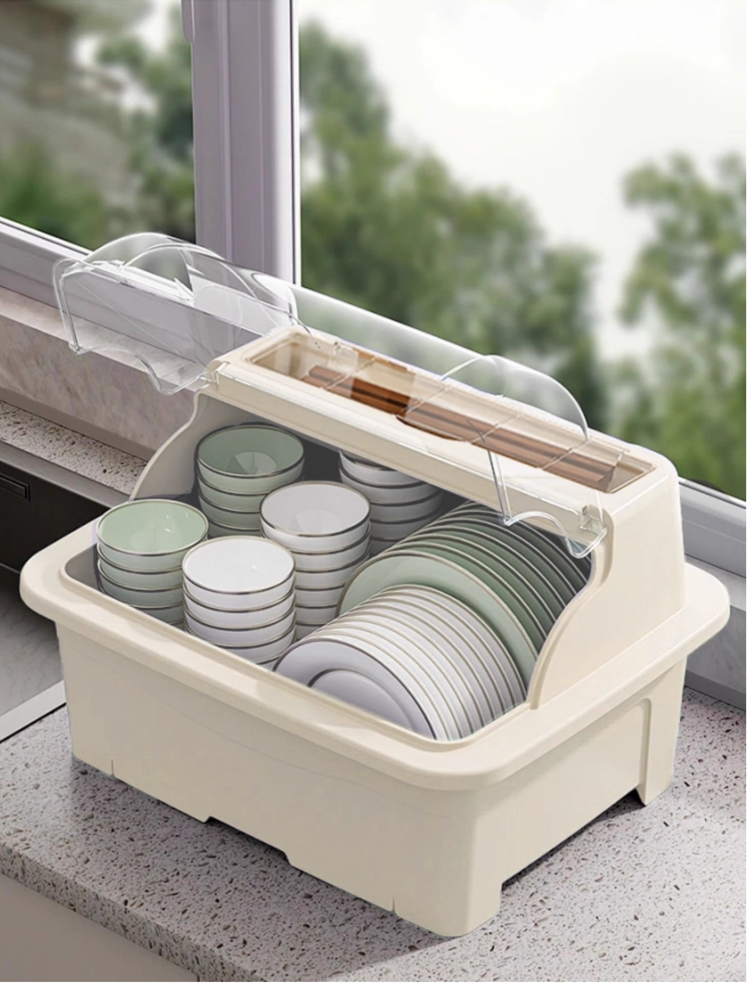 • 대형 사이즈 - 크림 화이트 [5~6인용] 바퀴벌레 방지 및 방습 상판 젓가락 꽂이 업그레이드 및 두꺼워짐