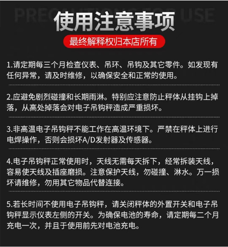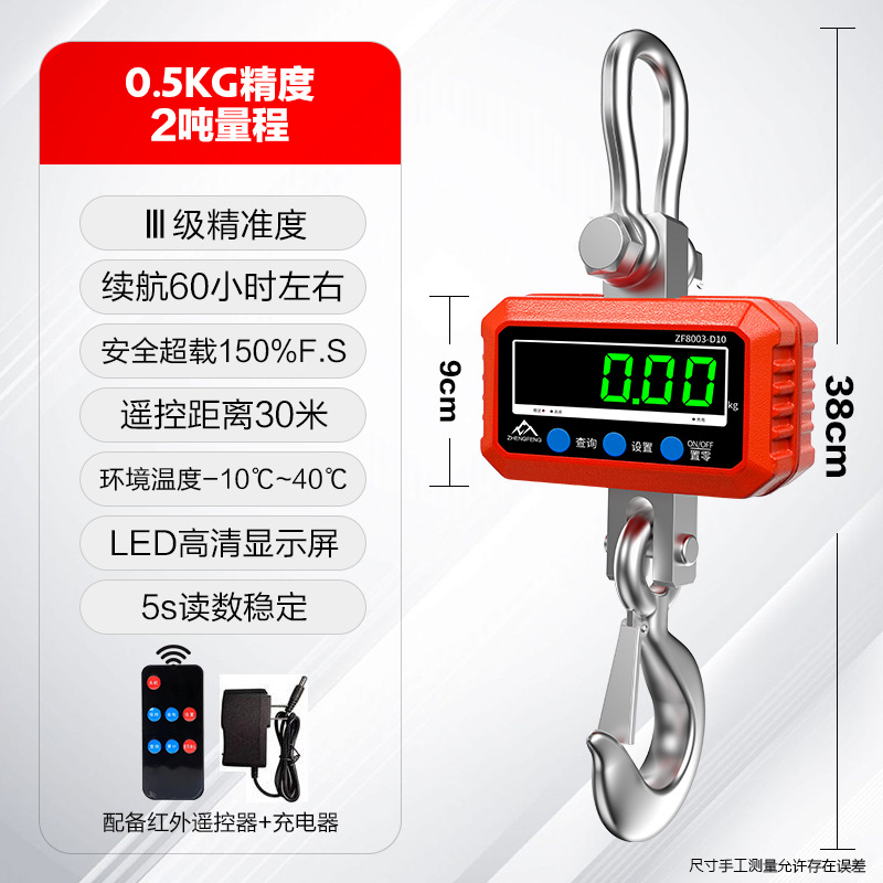 • 2톤 정확도 0.5kg(방수 크레인 스케일은 완전히 밀봉되어 방수됨) 빨간색과 녹색 문자 간 원클릭 전환