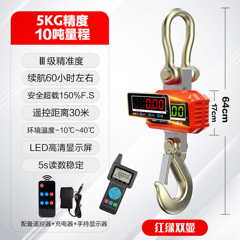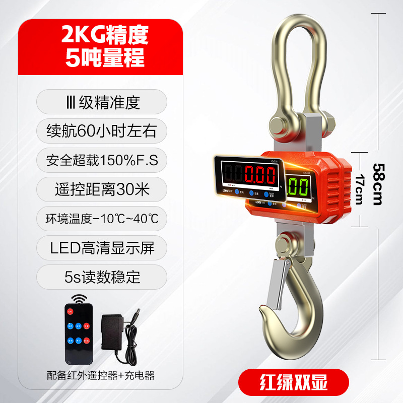 • 5톤 정확도 2kg + 무선 휴대용 듀얼 디스플레이 방수 크레인 스케일
