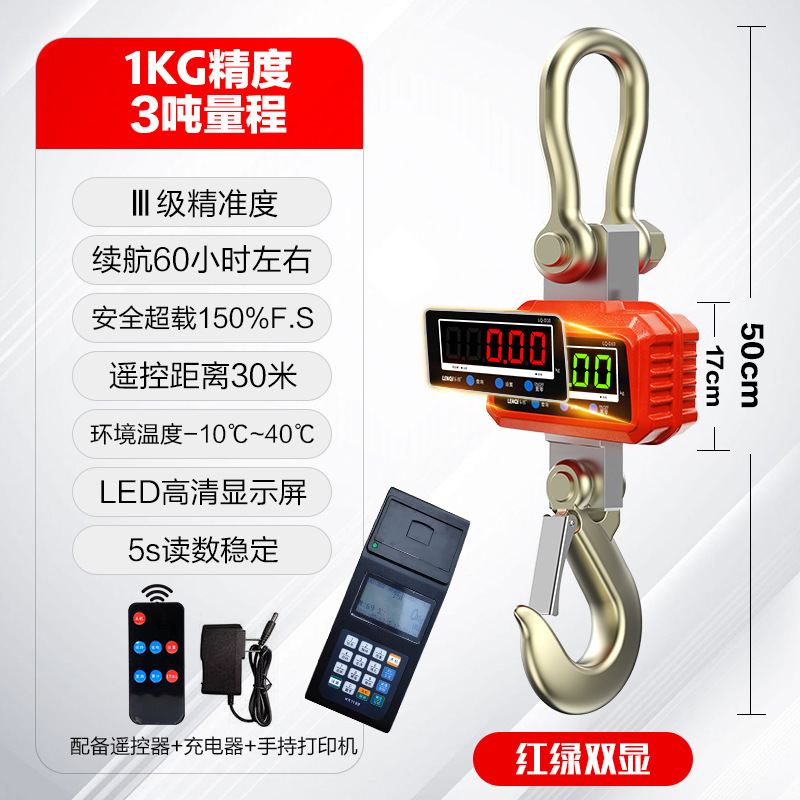 • 3톤 정확도 1kg + 무선 휴대용 듀얼 디스플레이 방수 크레인 스케일