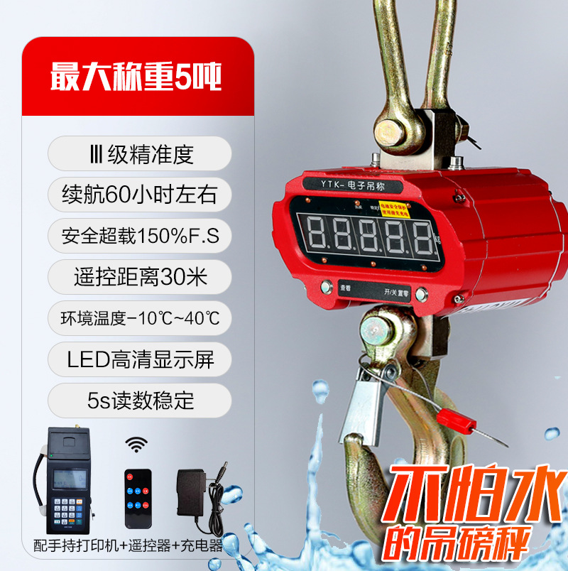 • 5톤 정확도 2kg + 무선 휴대용 인쇄 방수형 크레인 스케일